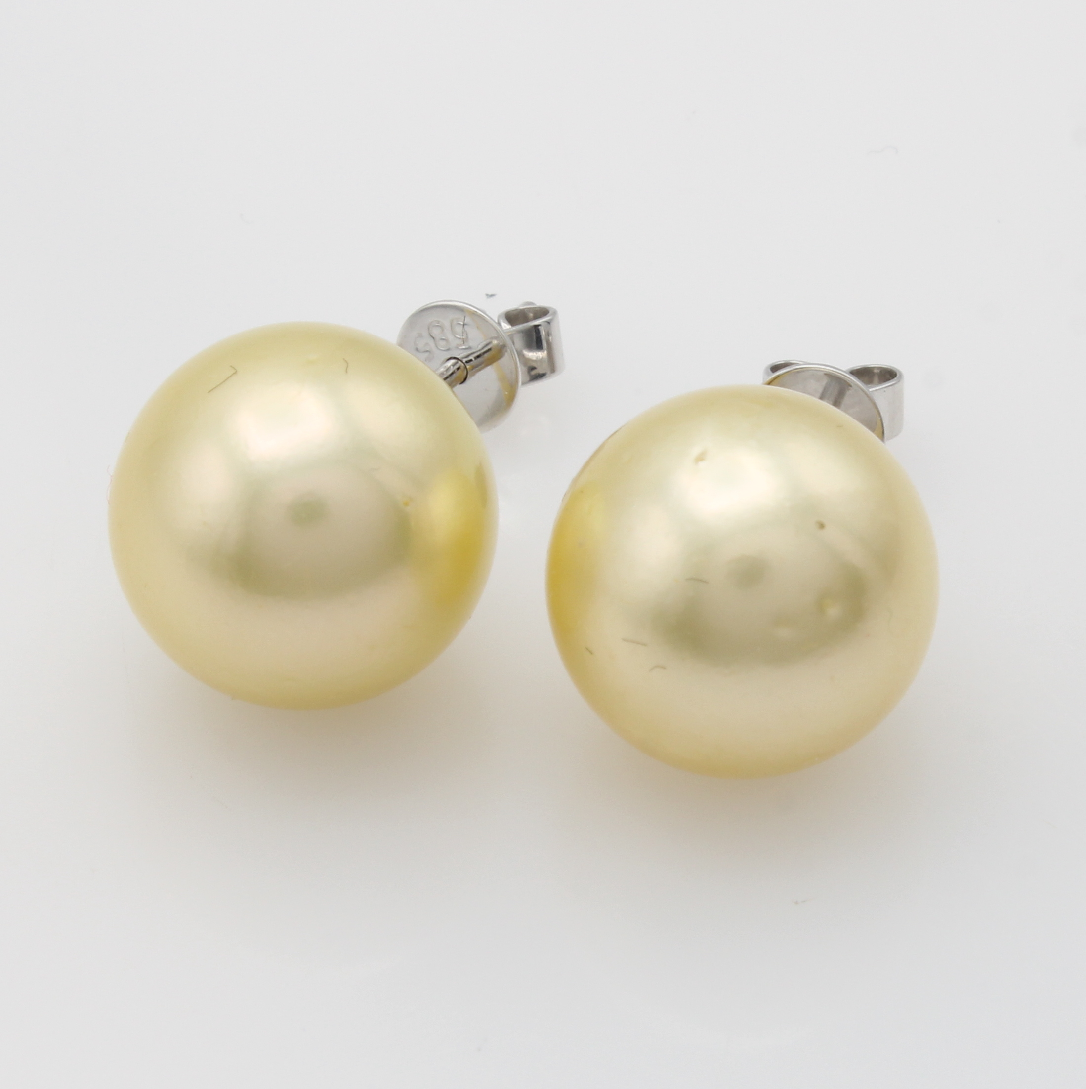 Paar Südseezuchtperlohrstecker, WG 585/000, 2 champagnerf. Perlen, D. ca. 13 mm Schätzpreis: 1460, - EUR