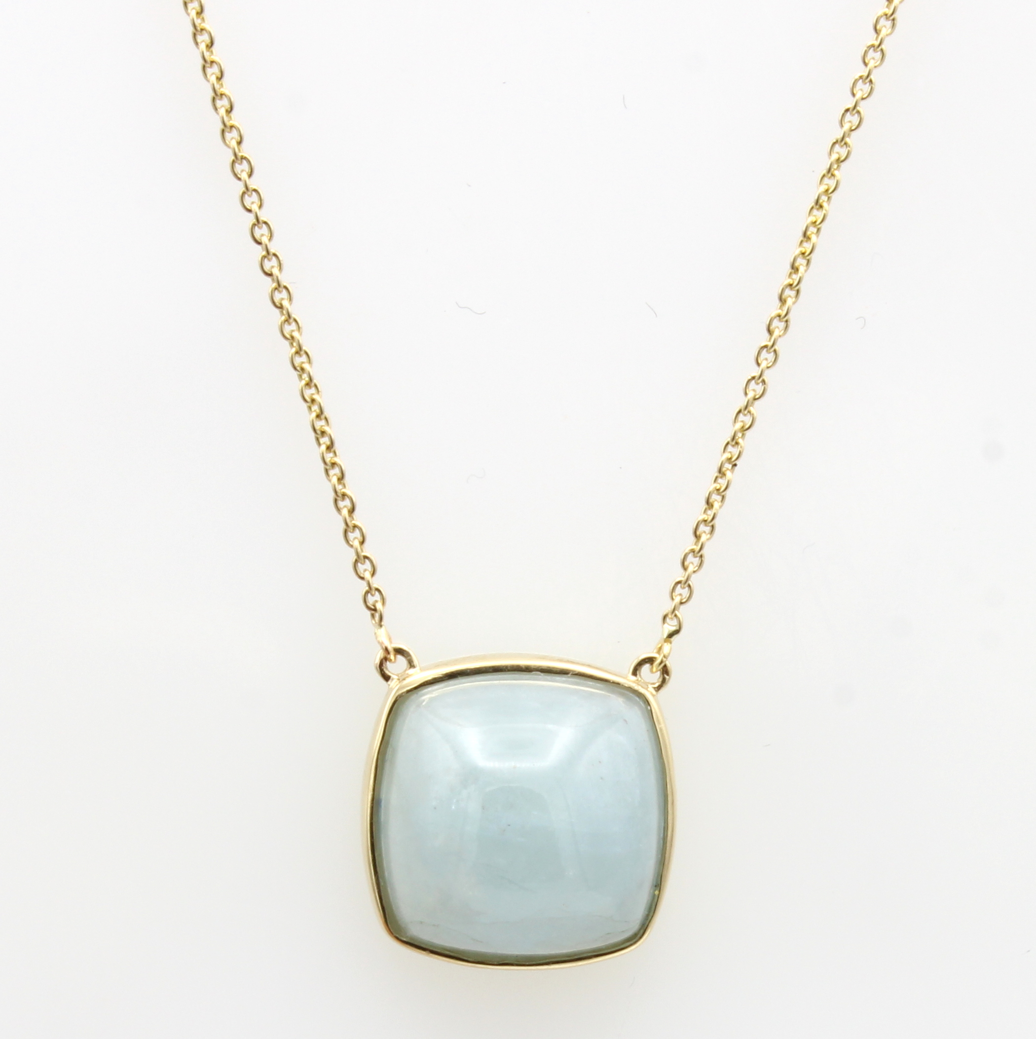 Collier mit Aquamarin, GG 585/000, Aquama- rincabochon ca. 9.04 ct, in L. ca. 42 u. 45 cmtragbar Schätzpreis: 1190, - EUR
