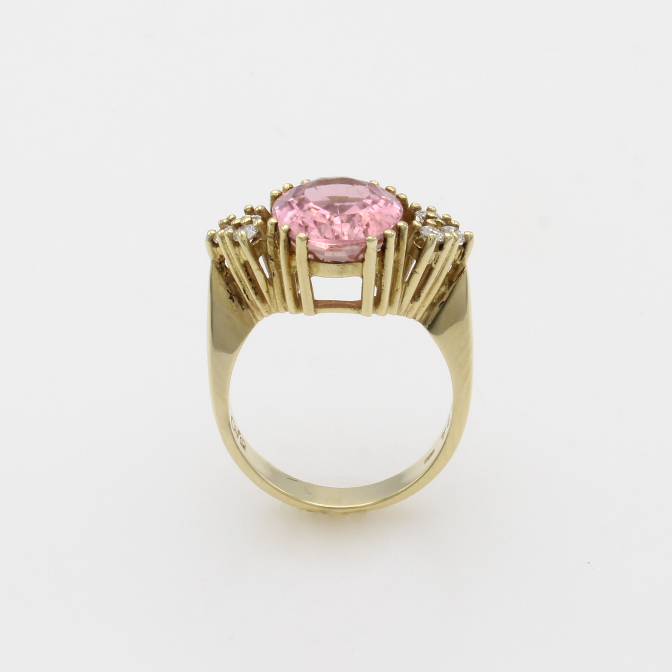 Ring mit Turmalin und Brillanten, GG 585/000, ovaler, rosa Turmalin ca. 5.80 ct, 6 Brill. zus. ca. 0.24 ct feines Weiß/si, RW ca. 56 Schätzpreis: 3160, - EUR