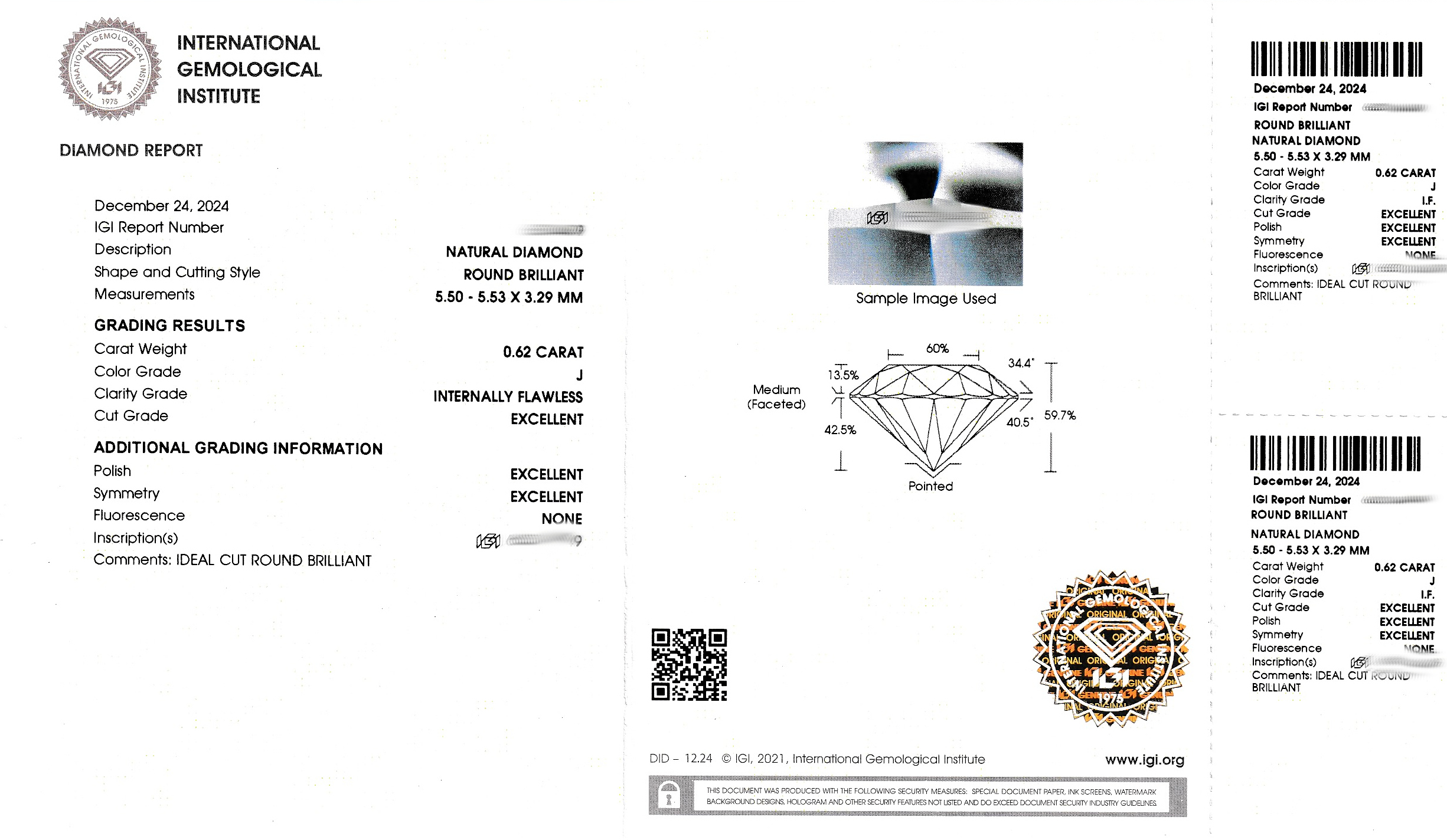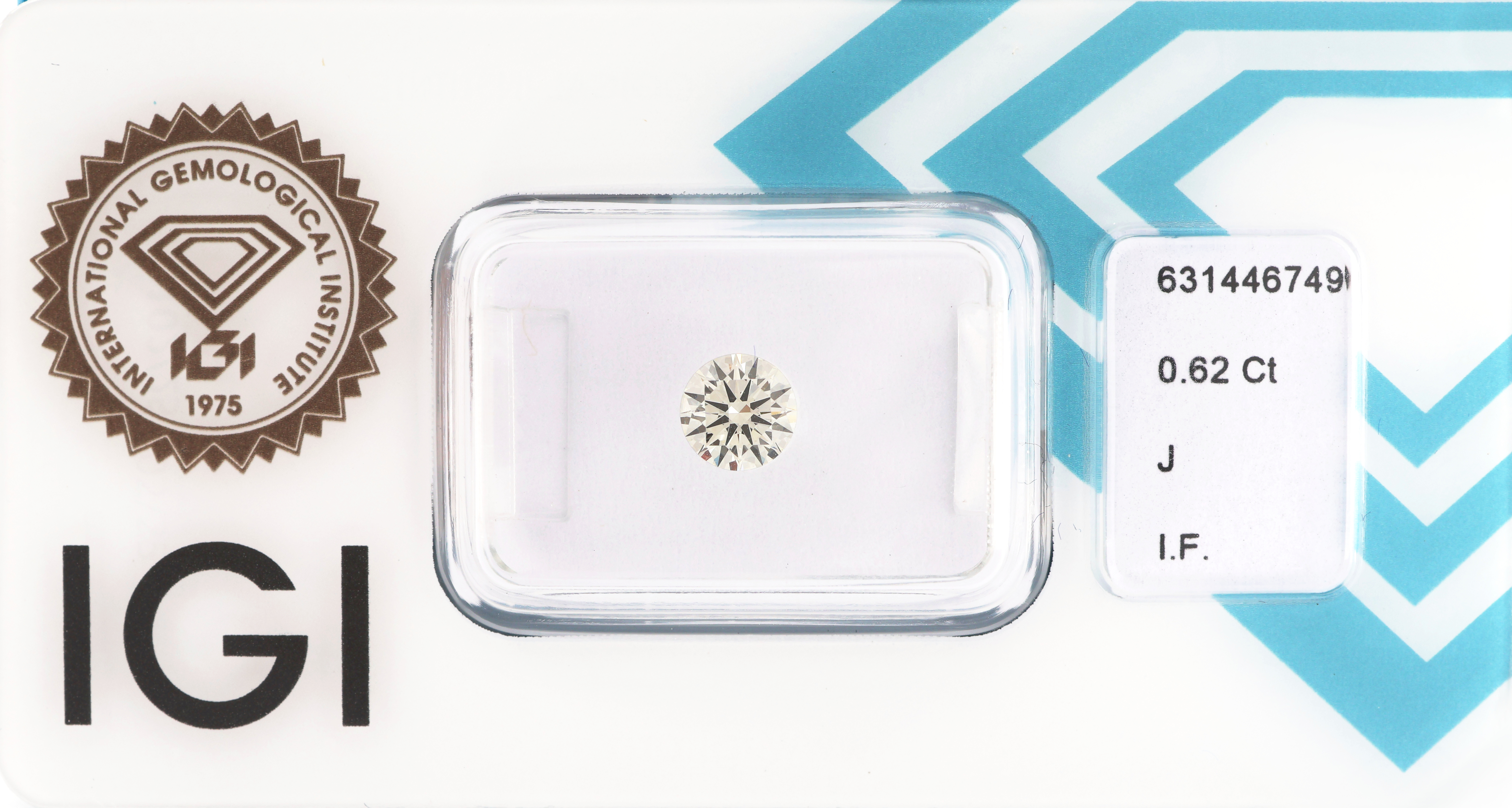 Loser Brillant, 0.62 ct l.get.Weiß (J)/lupenrein, eingeschweißt, IGI Expertise anbei