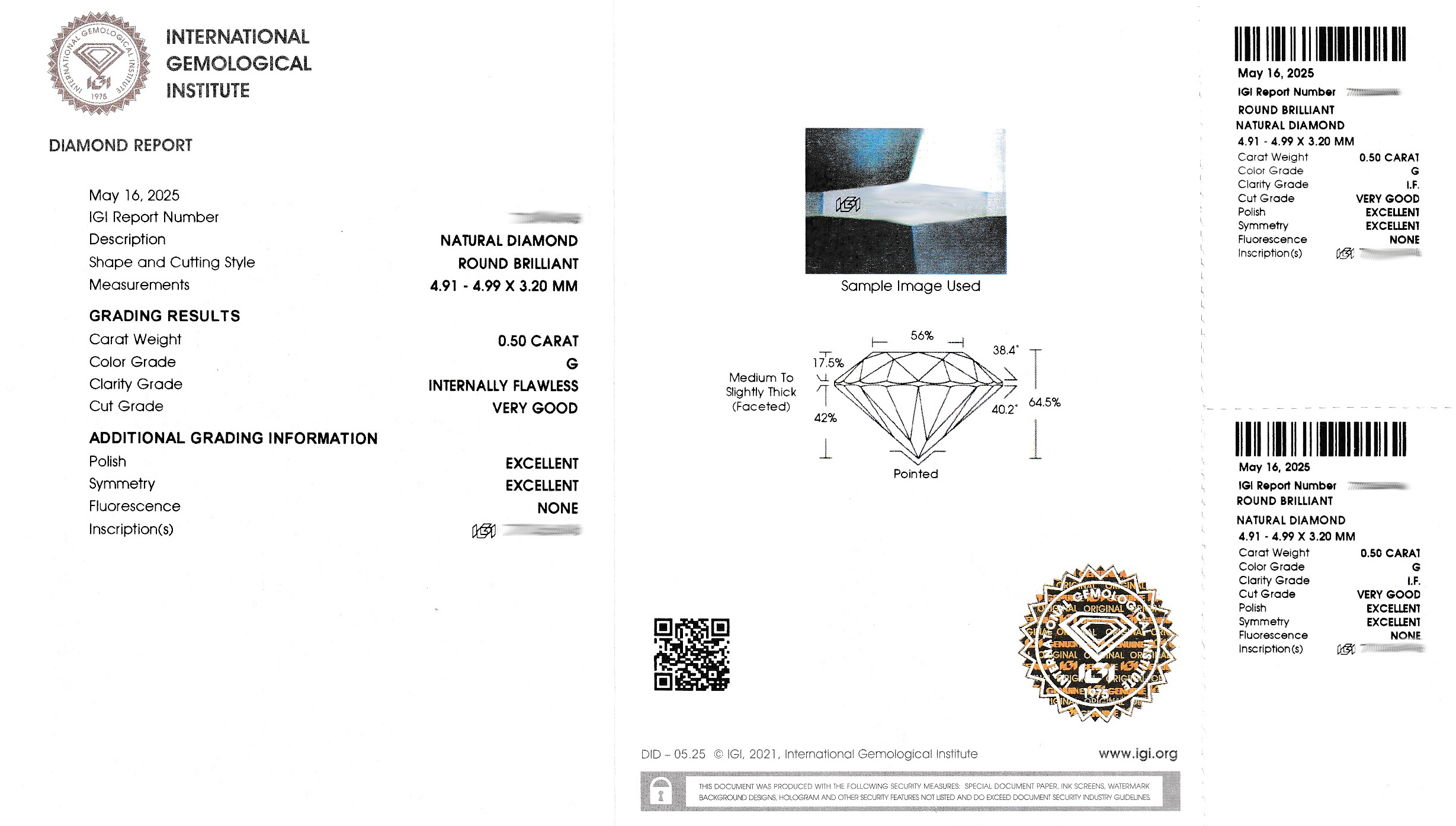 Loser Brillant, 0.50 ct feines Weiß (G)/lupenrein, eingeschweißt, IGI Expertise anbei