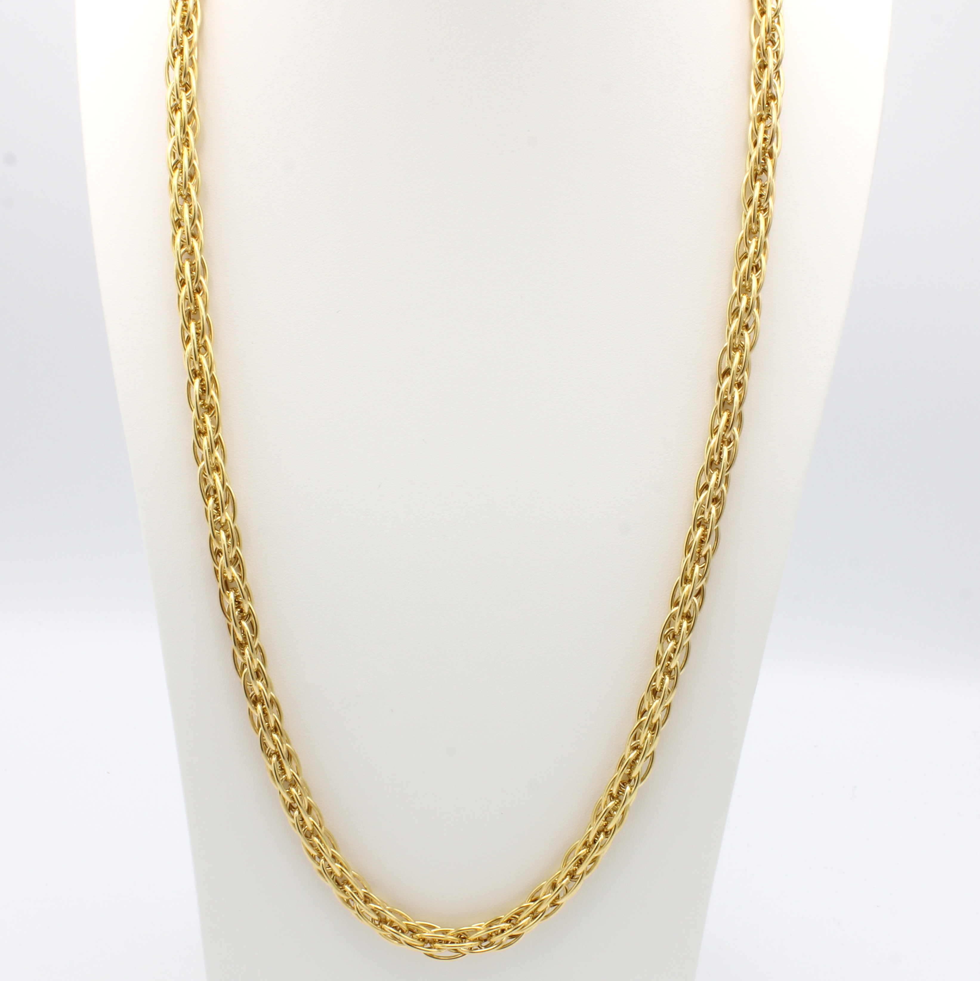 Massives Collier, GG 750/000, ovale Doppel- ankerglieder, Karabinerschl., B. ca. 8 mm, Handarbeit aus Pforzheim, L. ca. 73.5 cm
