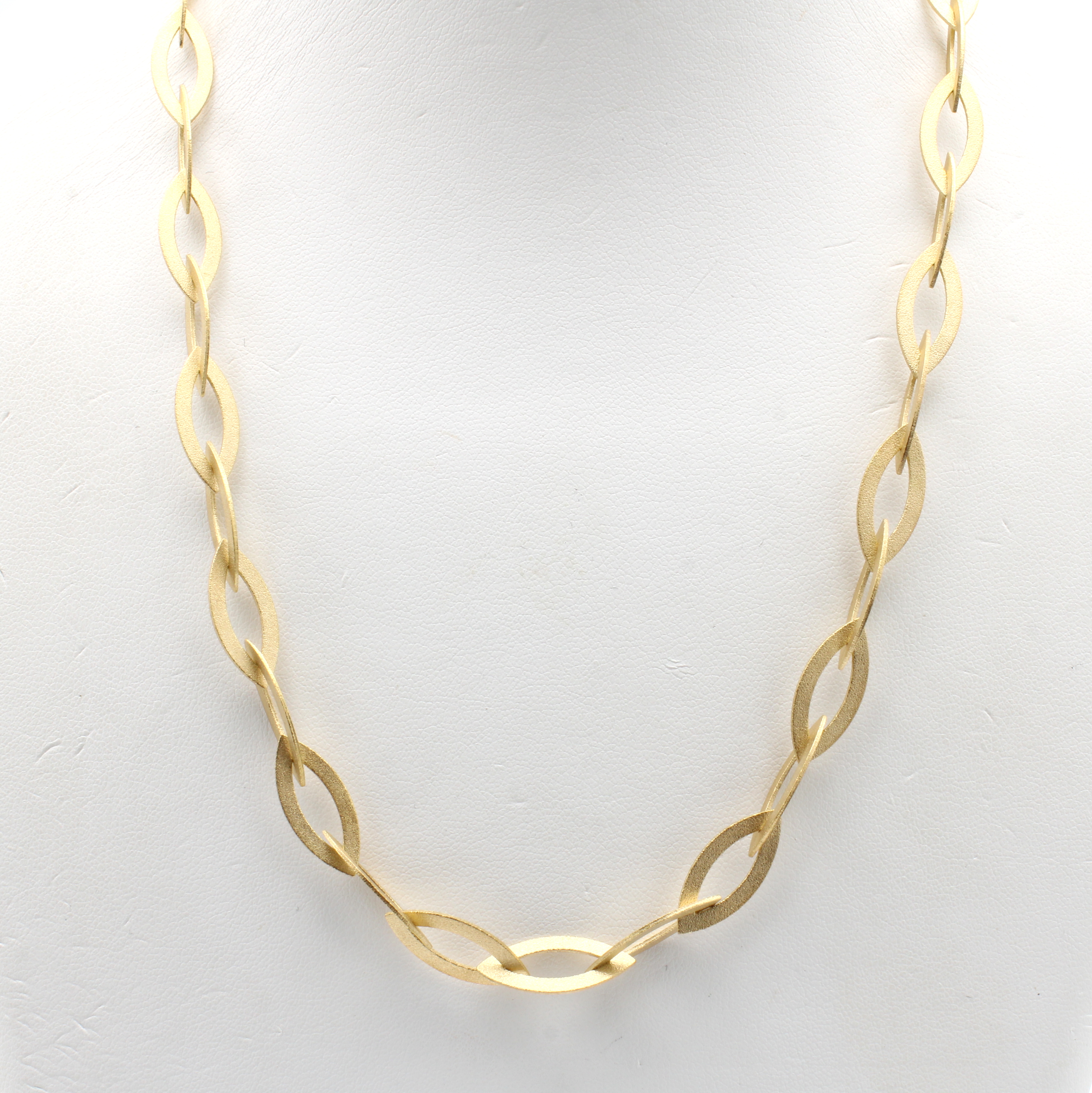 Collier, GG 750/000, mattierte navetteförm. Glieder, Schließe integriert, massive Handar- beit aus Pforzheim, L. ca. 46 cm