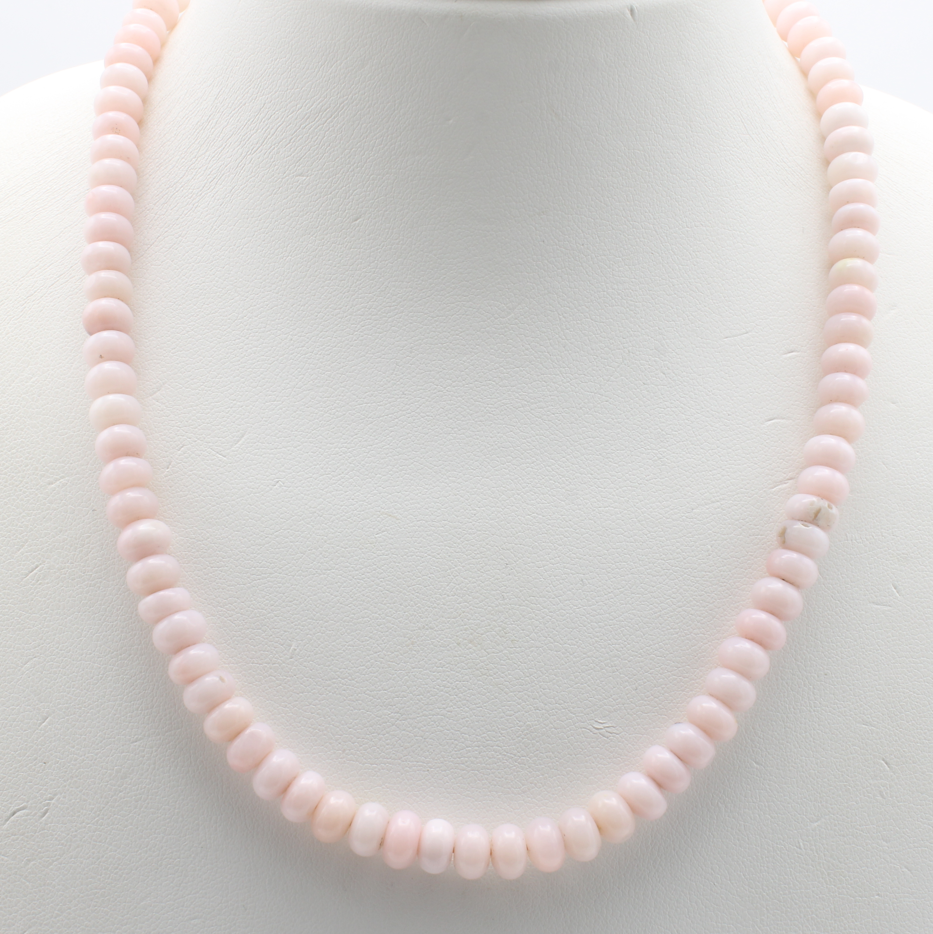 Opalkette, Schließe 925er Silber, roséfarb. Opale, D. ca. 7 mm, Herkunft: Peru, L. ca. 43 cm