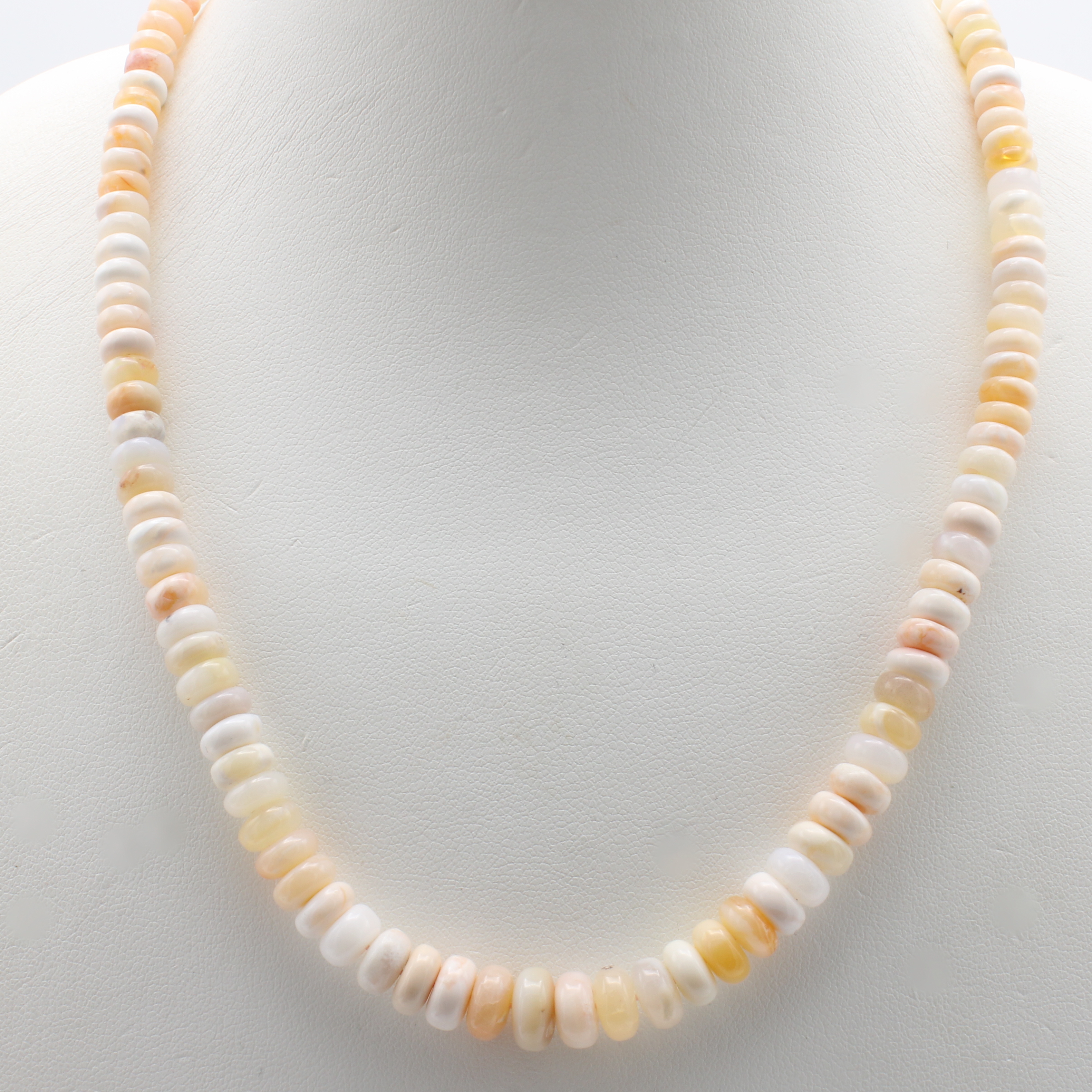 Opalkette, Karabinerschl. 925er Silber, mexikanische Opalrondelle, multicolorfarb. Opale, D. ca. 5-9 mm, Herkunft: Mexiko, L. ca.42 cm