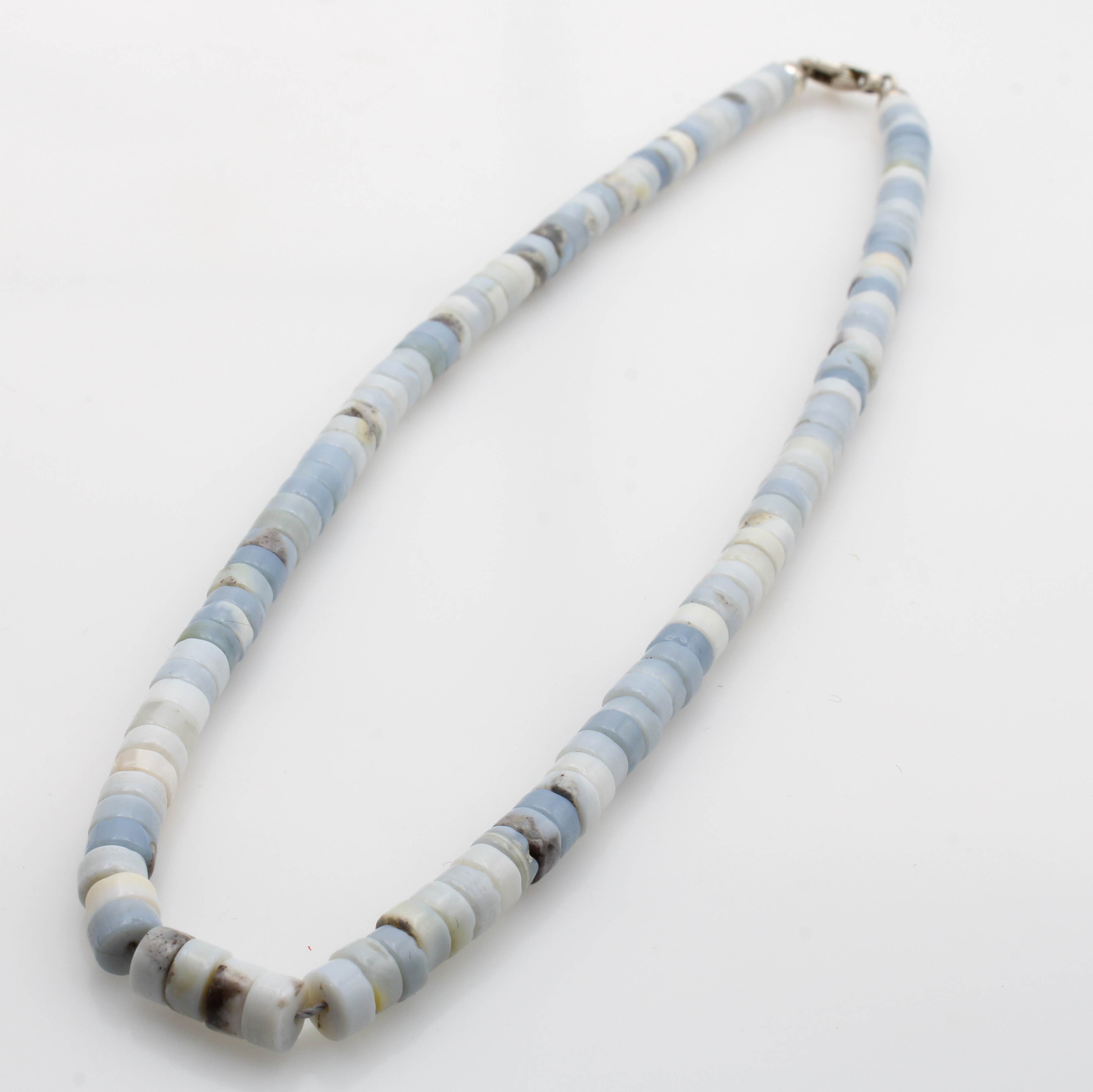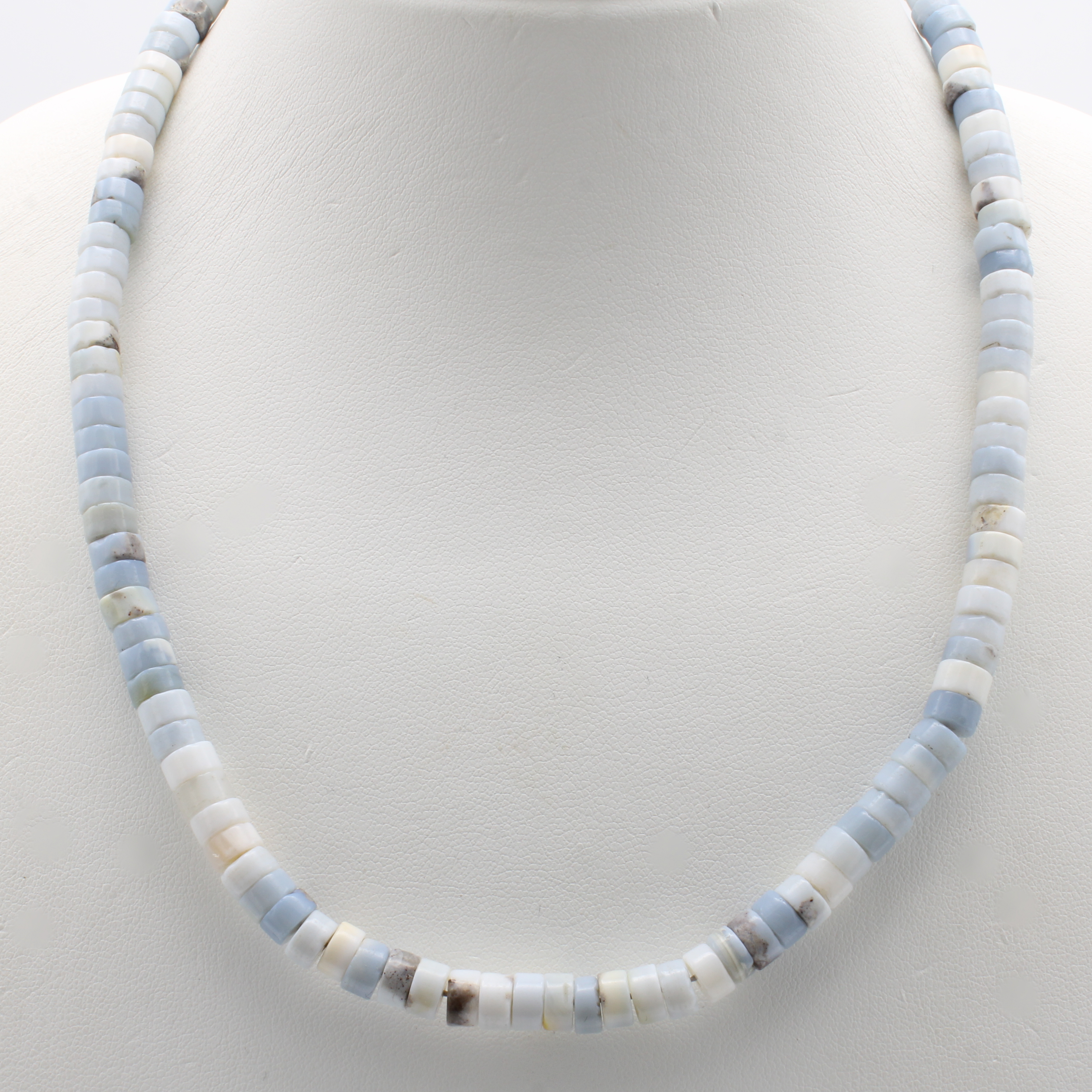 Blauopalkette, Karabinerschl. 925er Silber, Opalrondelle, Maße ca. 6x3 mm, Herkunft: Utah,L. ca. 43 cm