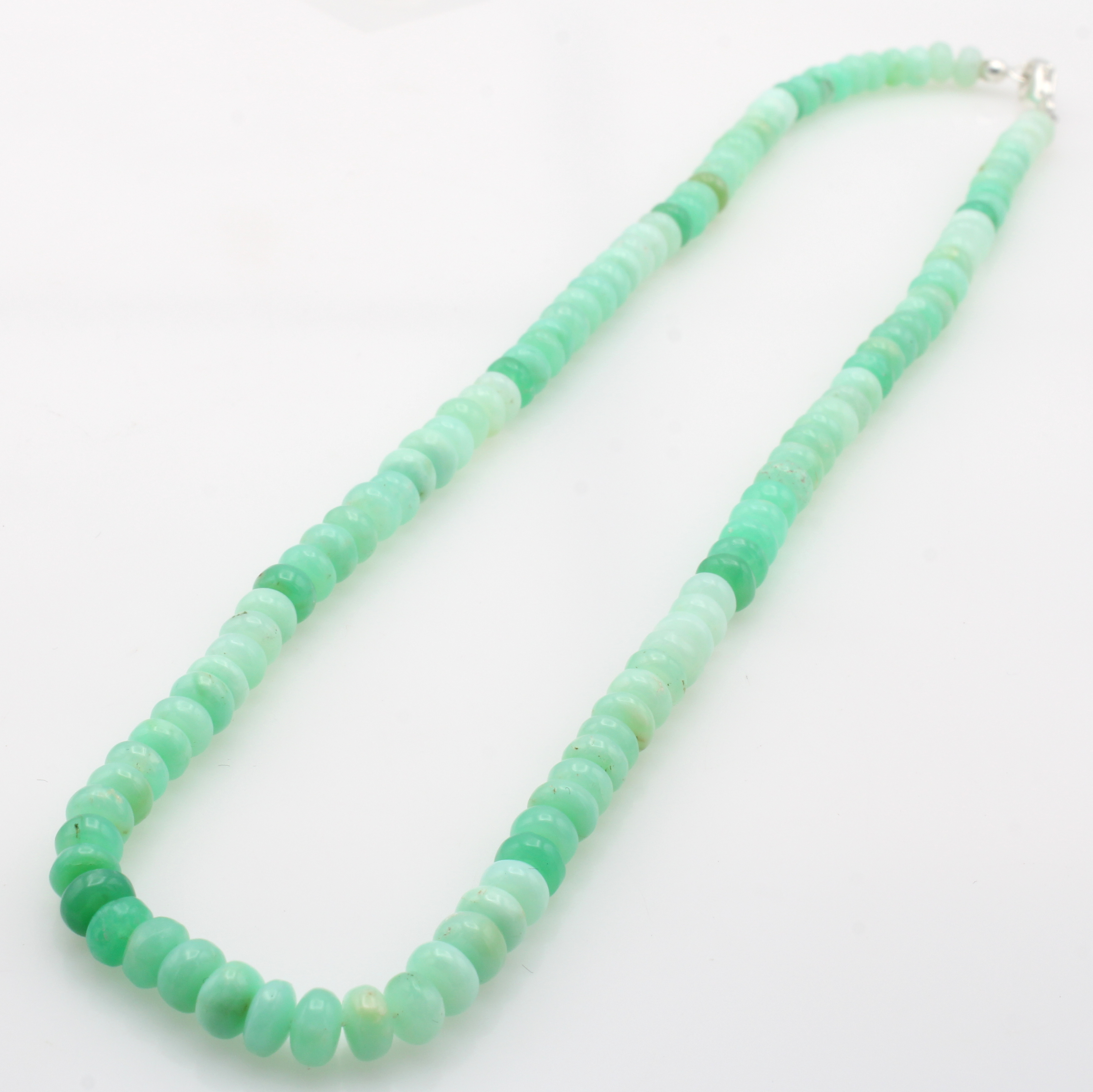 Opalkette, Karabinerschl. 925er Silber, grüne Opale in versch. Grüntönen, D. ca. 5.5 mm, Herkunft: Tansania, L. ca. 49 cm