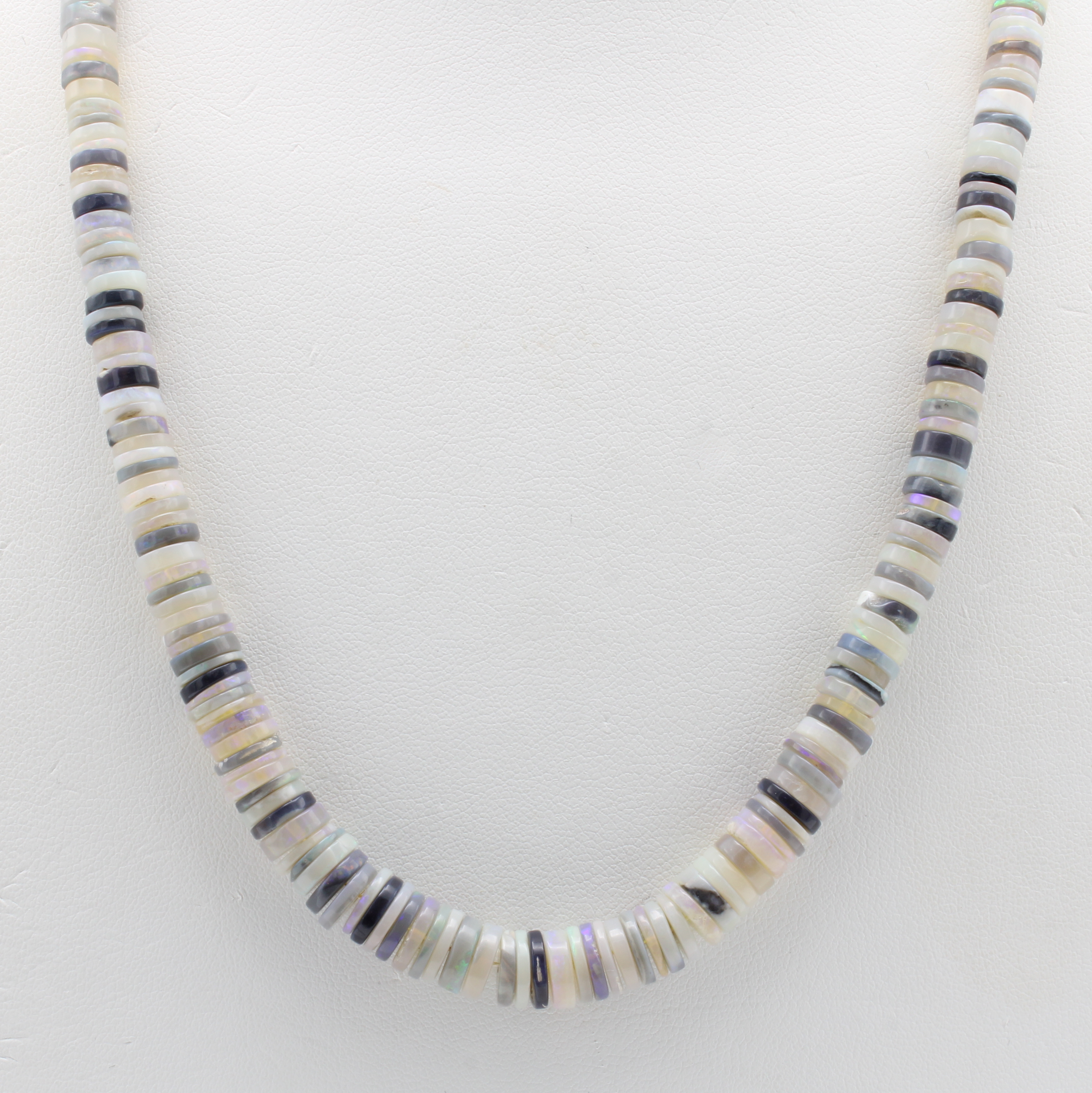 Opalkette, Karabinerschl. 925er Silber, dünne Rondelle in versch. Farben, Maße ca. 5- 8 mm, Herkunft: Australien, L. ca. 48