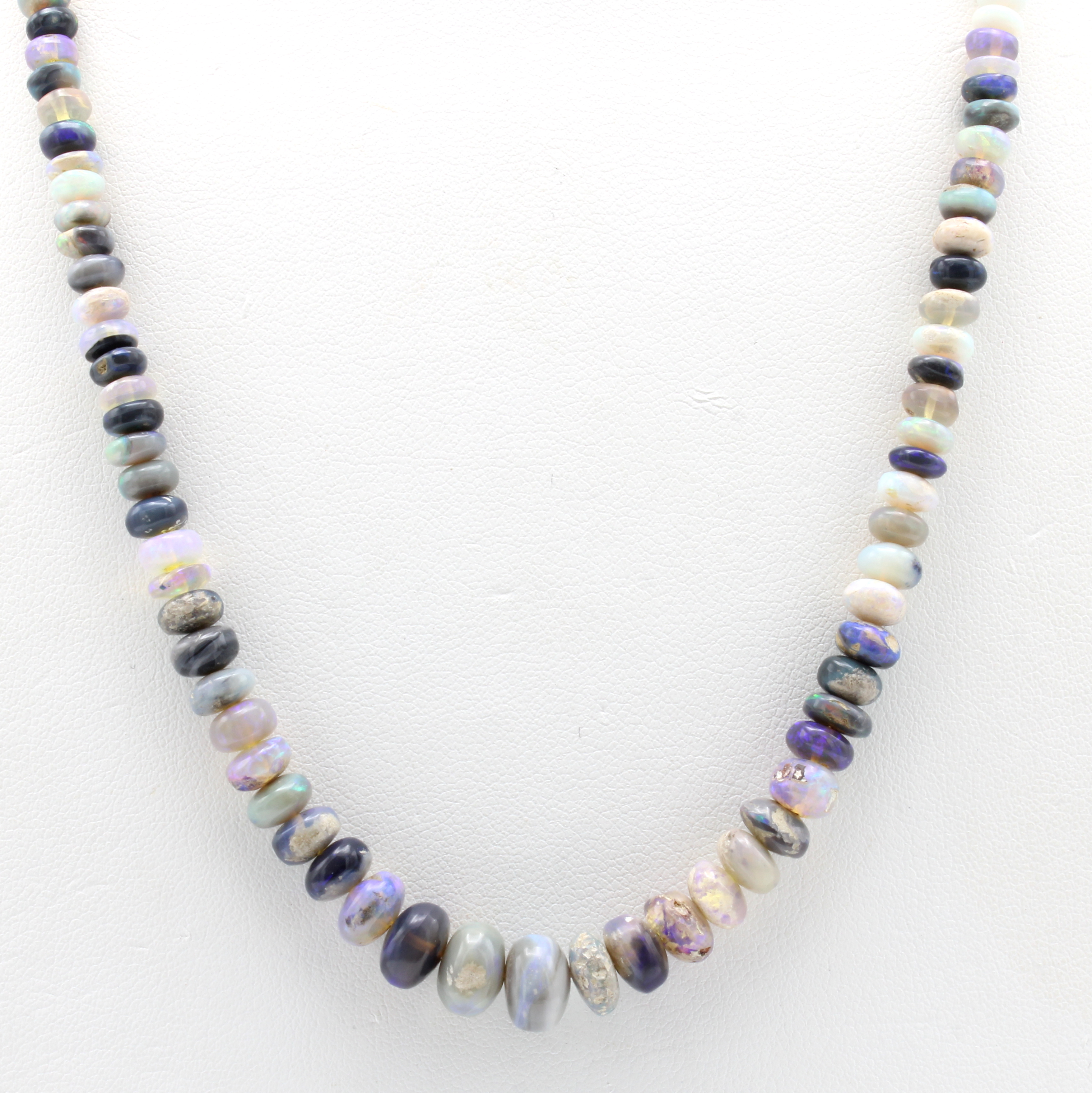 Opalkette, Karabinerschl. 925er Silber, Opalrondelle in versch. Farben, D. ca. 3.5-8 mm, Herkunft: Austalien, L. ca. 48 cm