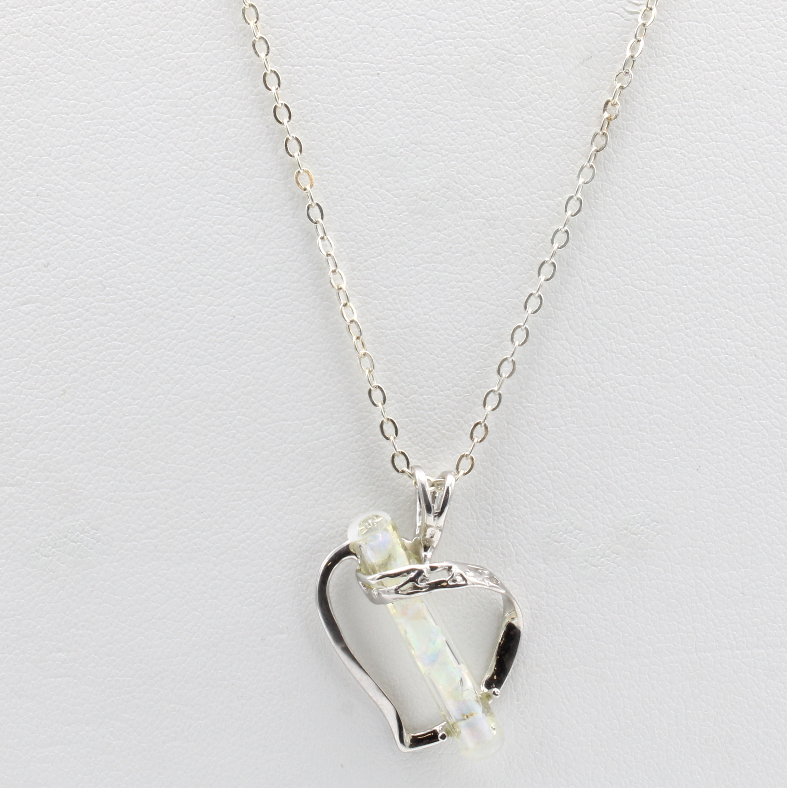 Anhänger mit Opalsplittern im Glasrohr an Kette, 925er Silber, Herkunft: Australien, L. ca. 43 cm