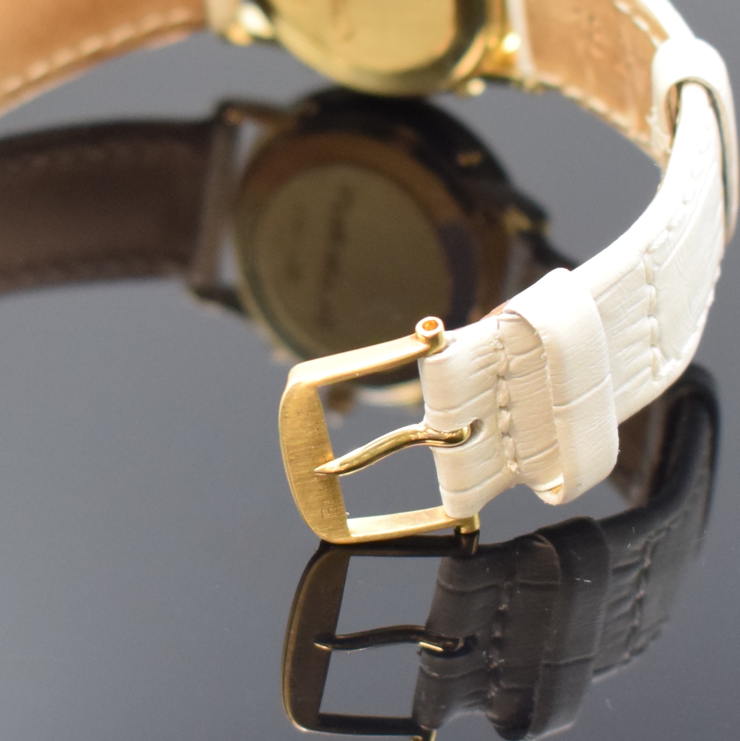 -teil. Geh., Boden und Glasrand aufgedr., Lederband m. orig. GG 750/000 Dornschl.,