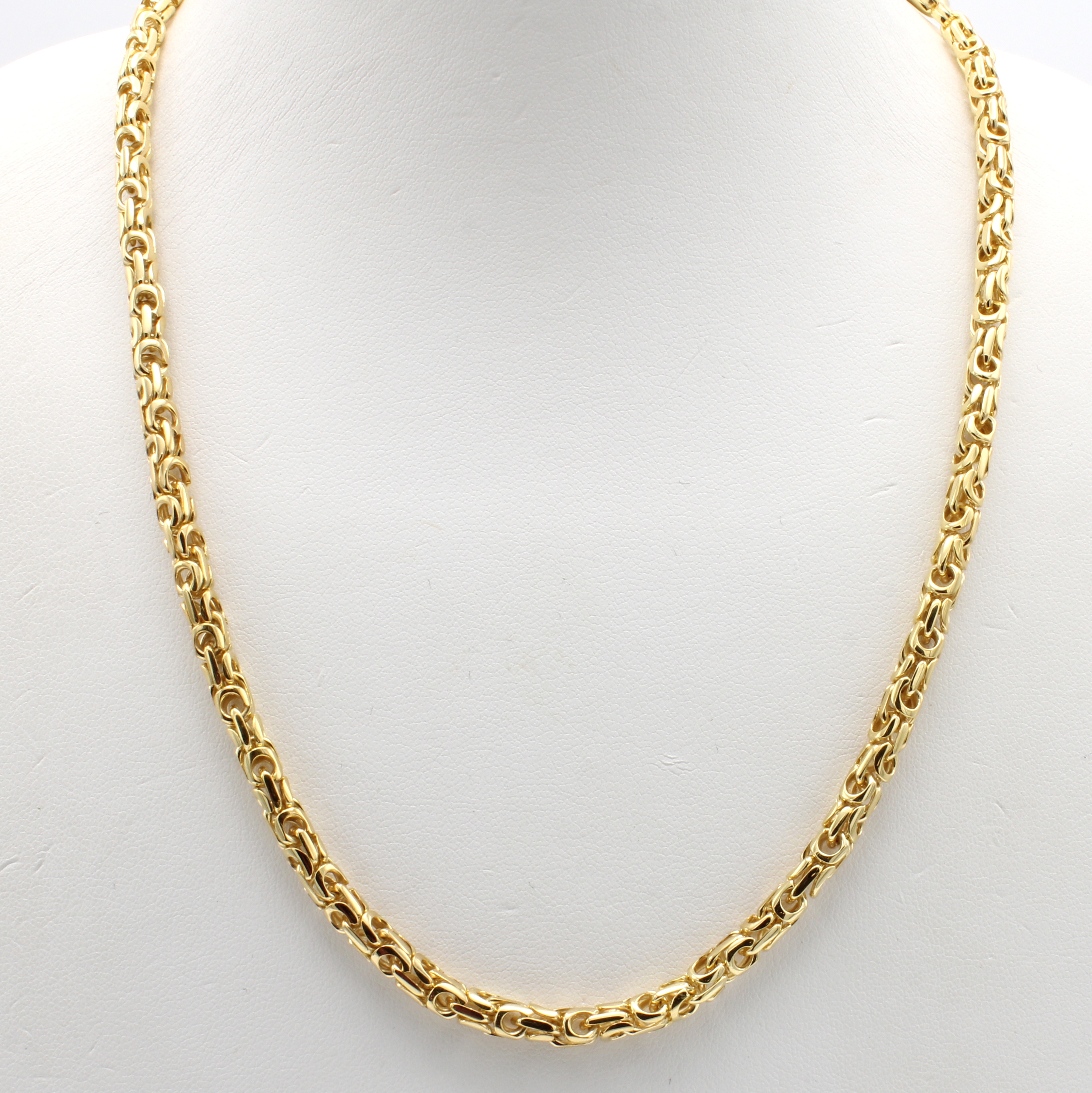 Massives Collier im modernen Königsketten- muster, GG 750/000, Karabinerschl., hoch- wertige Pforzheimer Goldschmiedearbeit, L. ca. 45.5 cm