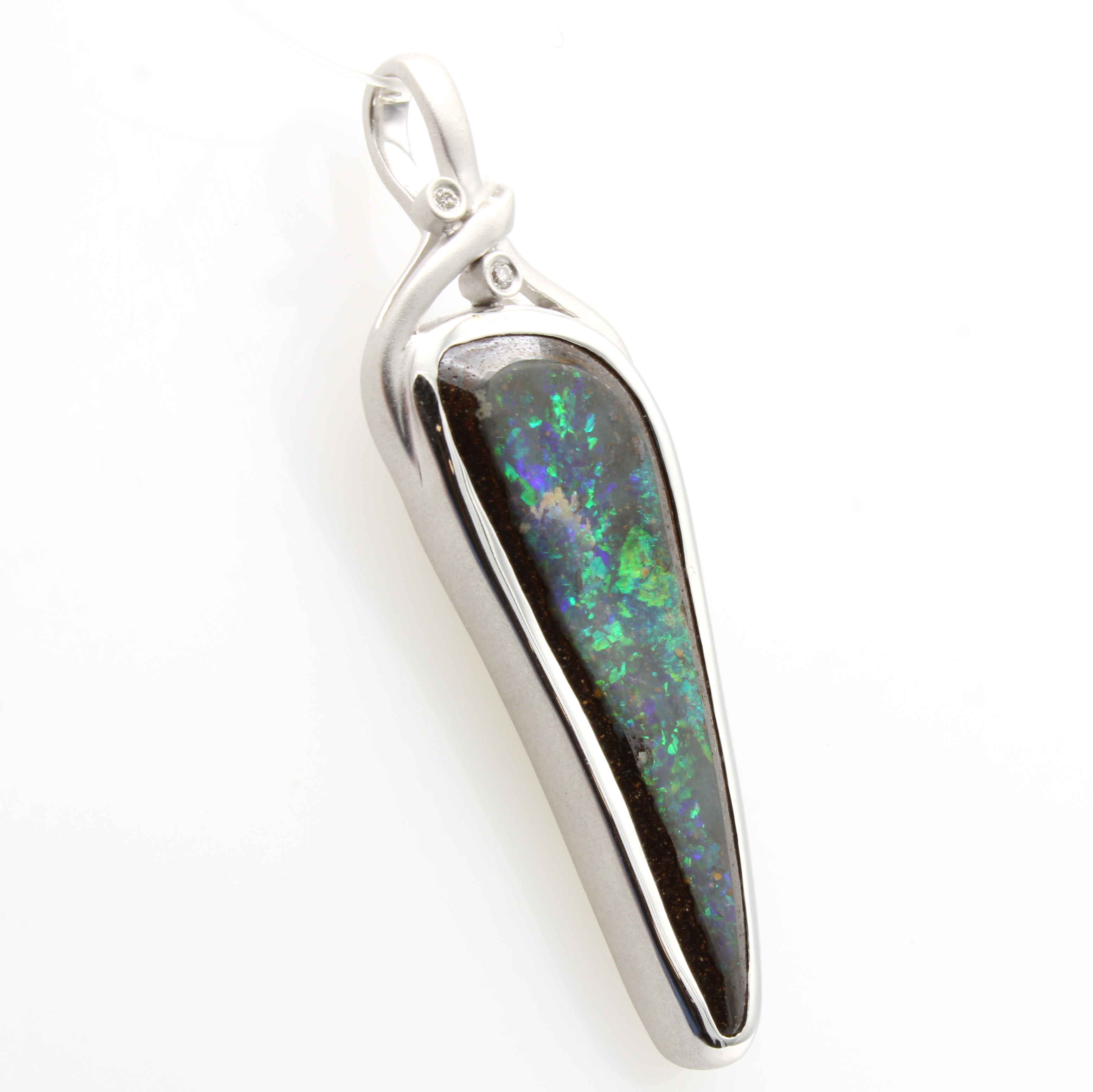 Anhänger mit Boulderopal und Brillanten, WG 750/000, z.T. matt., Boulderopal ca. 16.4 ct, 2 Brill. zus. ca. 0.02 ct l.get.Weiß/si Schätzpreis: 3900, - EUR