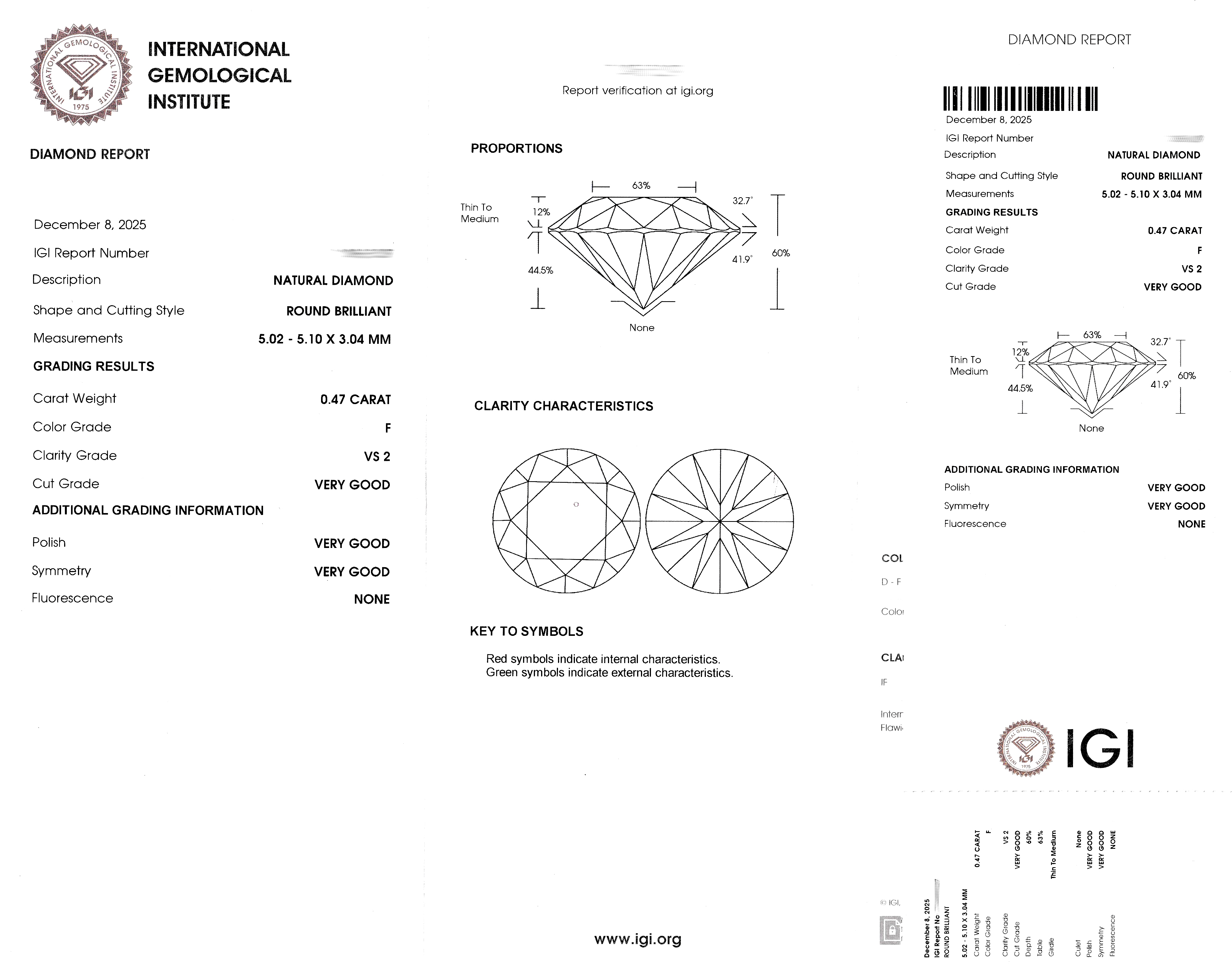 Loser Brillant, 0.47 ct feines Weiß+(F)/vs2, eingeschweißt, IGI-Expertise anbei Schätzpreis: 1700, - EUR