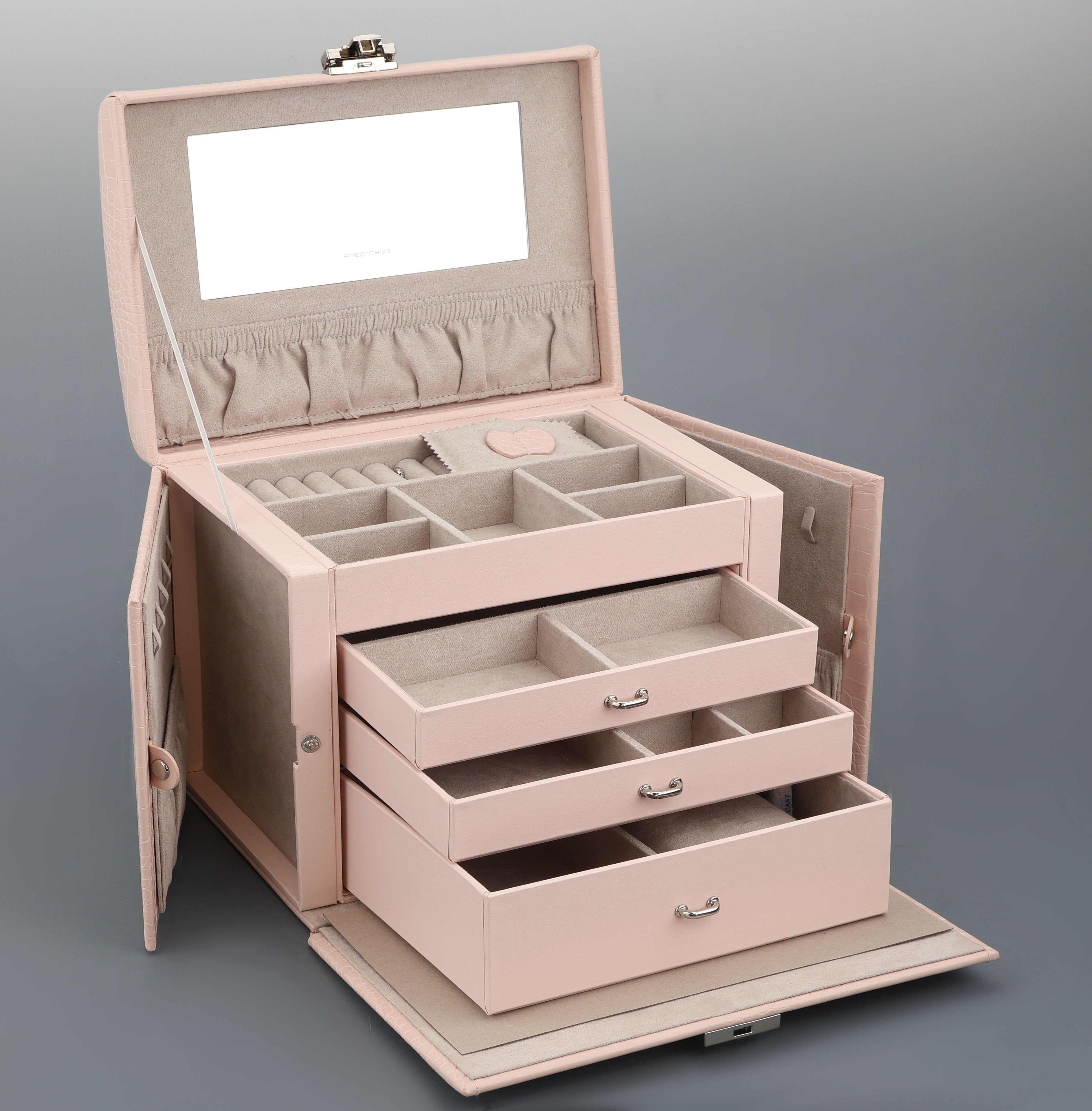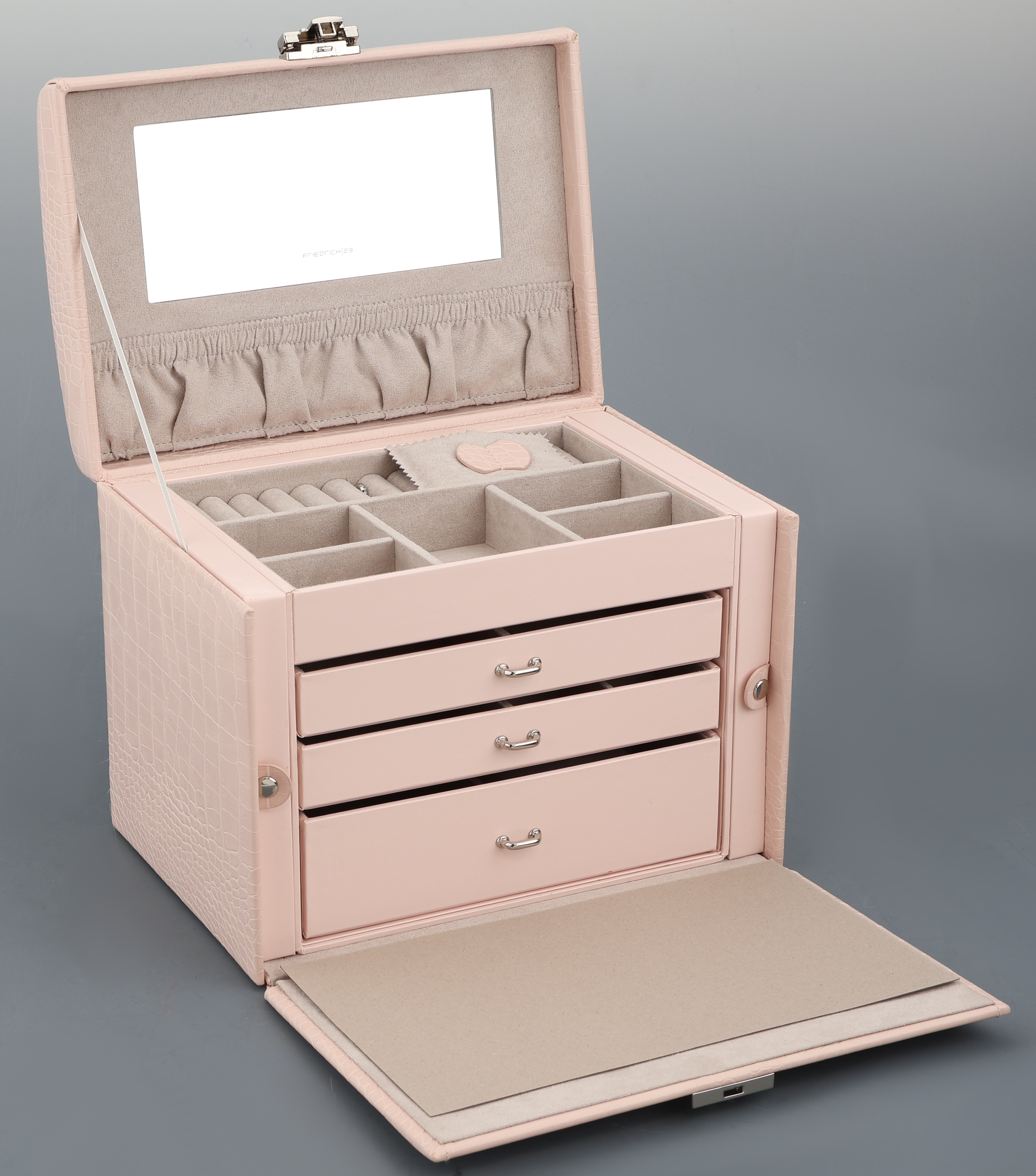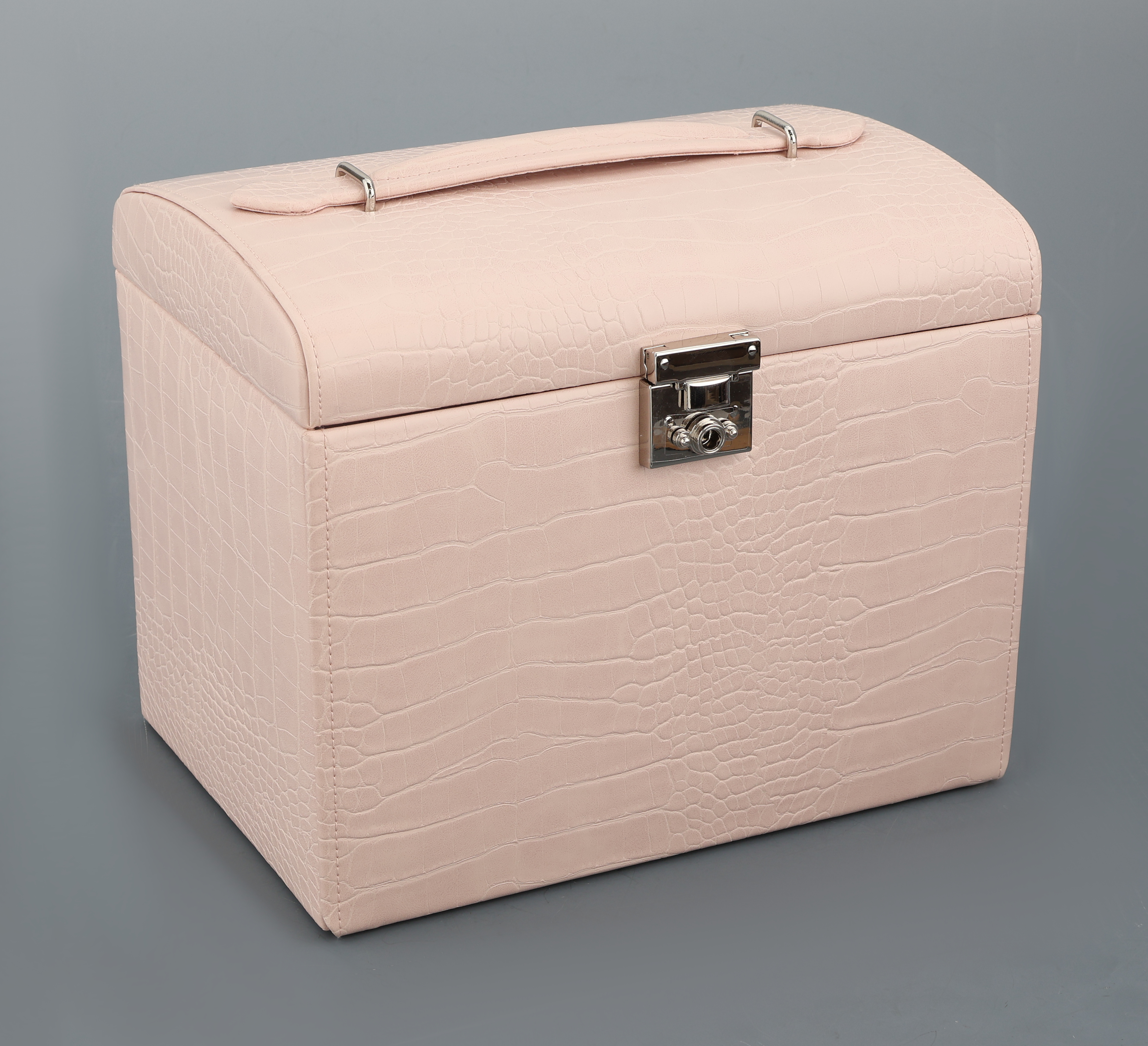 Altrosafarb. Schmuckkoffer in Kroko-Optik, Limited Edition, Feinsynthetik, 5 Fächer