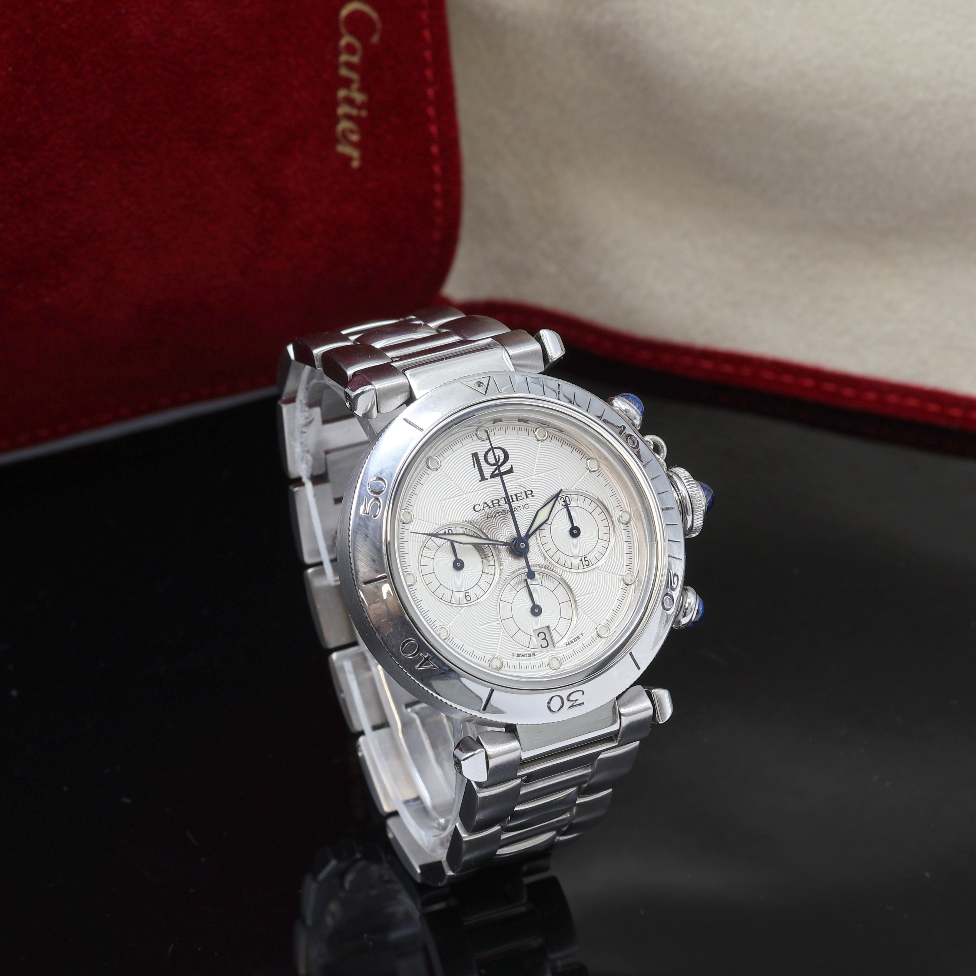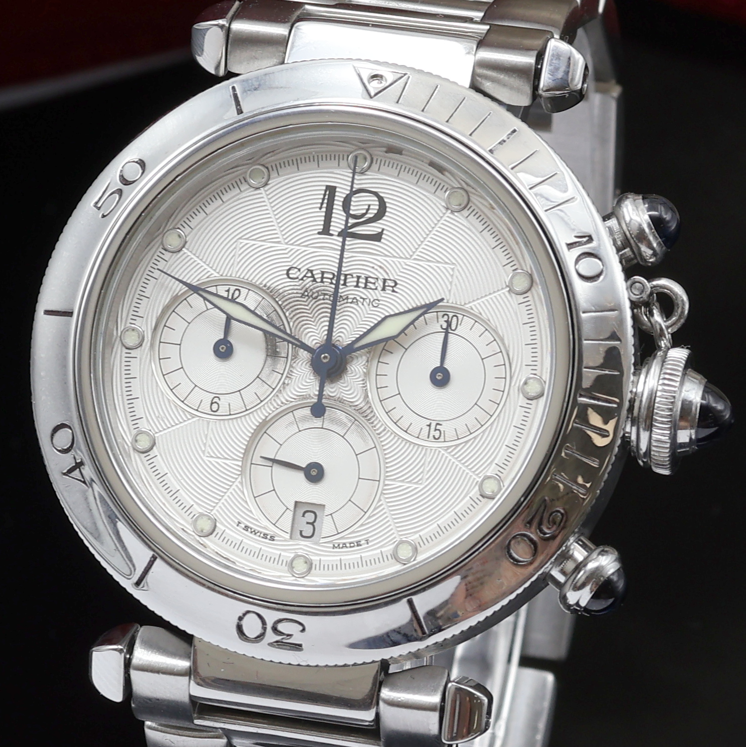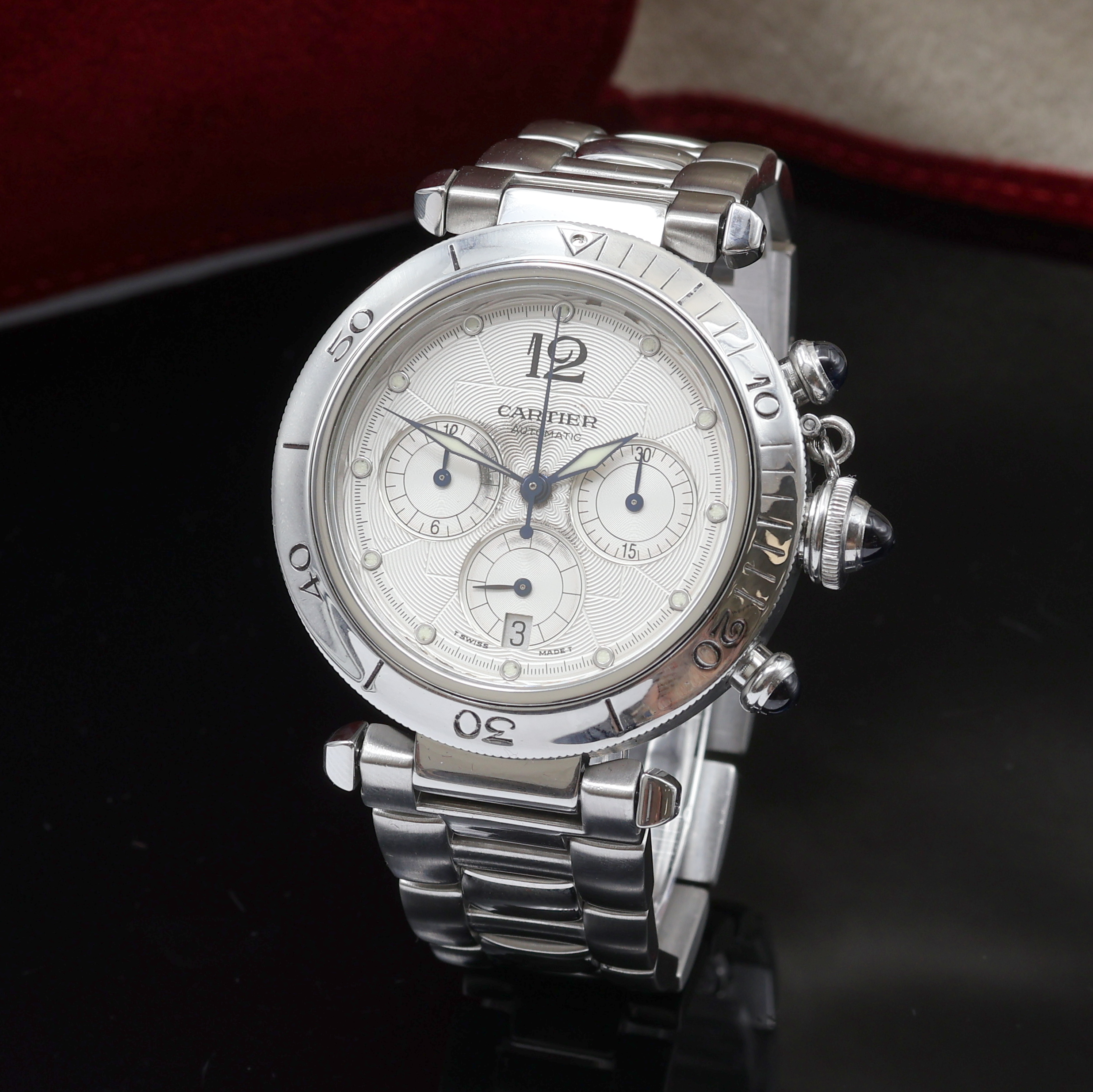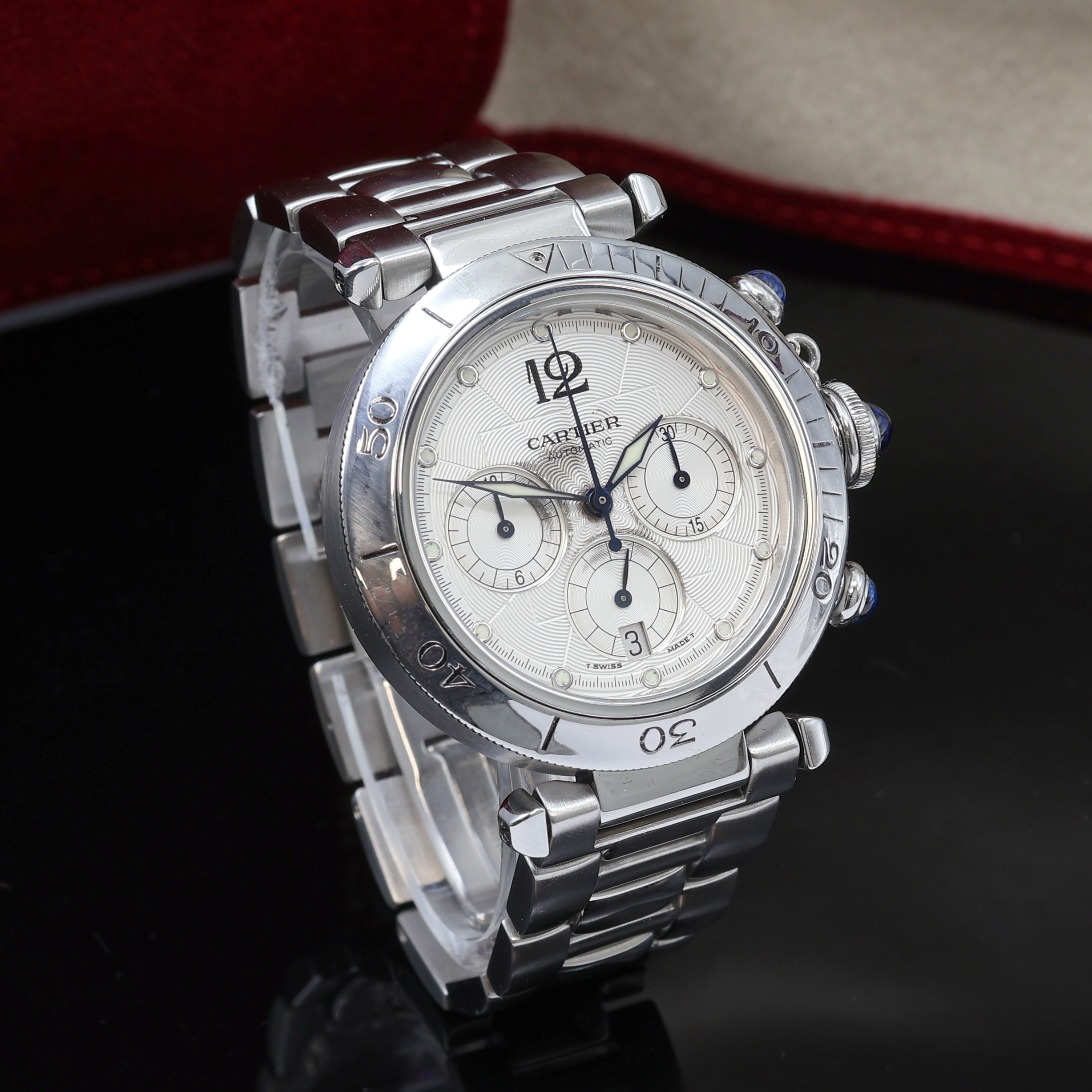 CARTIER Pasha Armbandchronograph Referenz 2113, Automatik, beids. vergl. Edelstahlgeh.