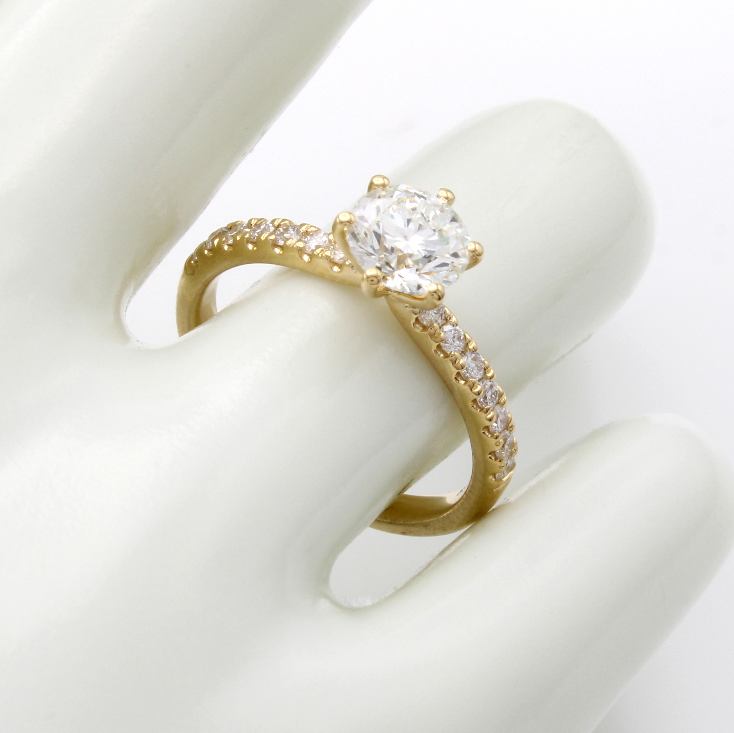 Ring mit Brillanten, GG 750/000, 1 Brill. in 6er Krappenfassung 1.03 ct Weiß/si, Besatzbrill. zus. ca. 0.26 ct feines Weiß/si, RW ca. 54, GIA-Expertise liegt vor Schätzpreis: 9299, - EUR