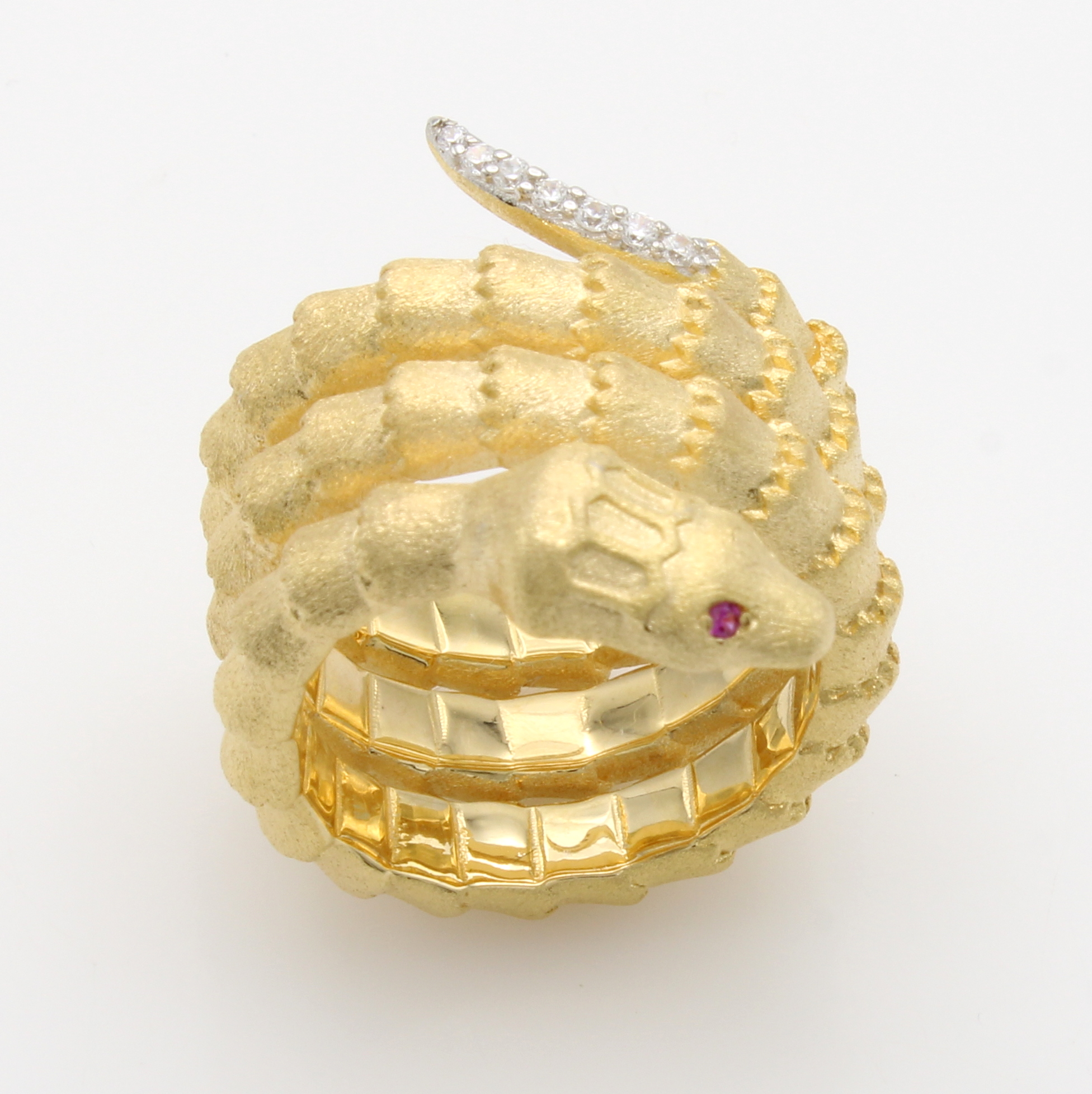 Ring "Schlange" mit Zirkonias, 925er Silber vergoldet und matt., RW 54