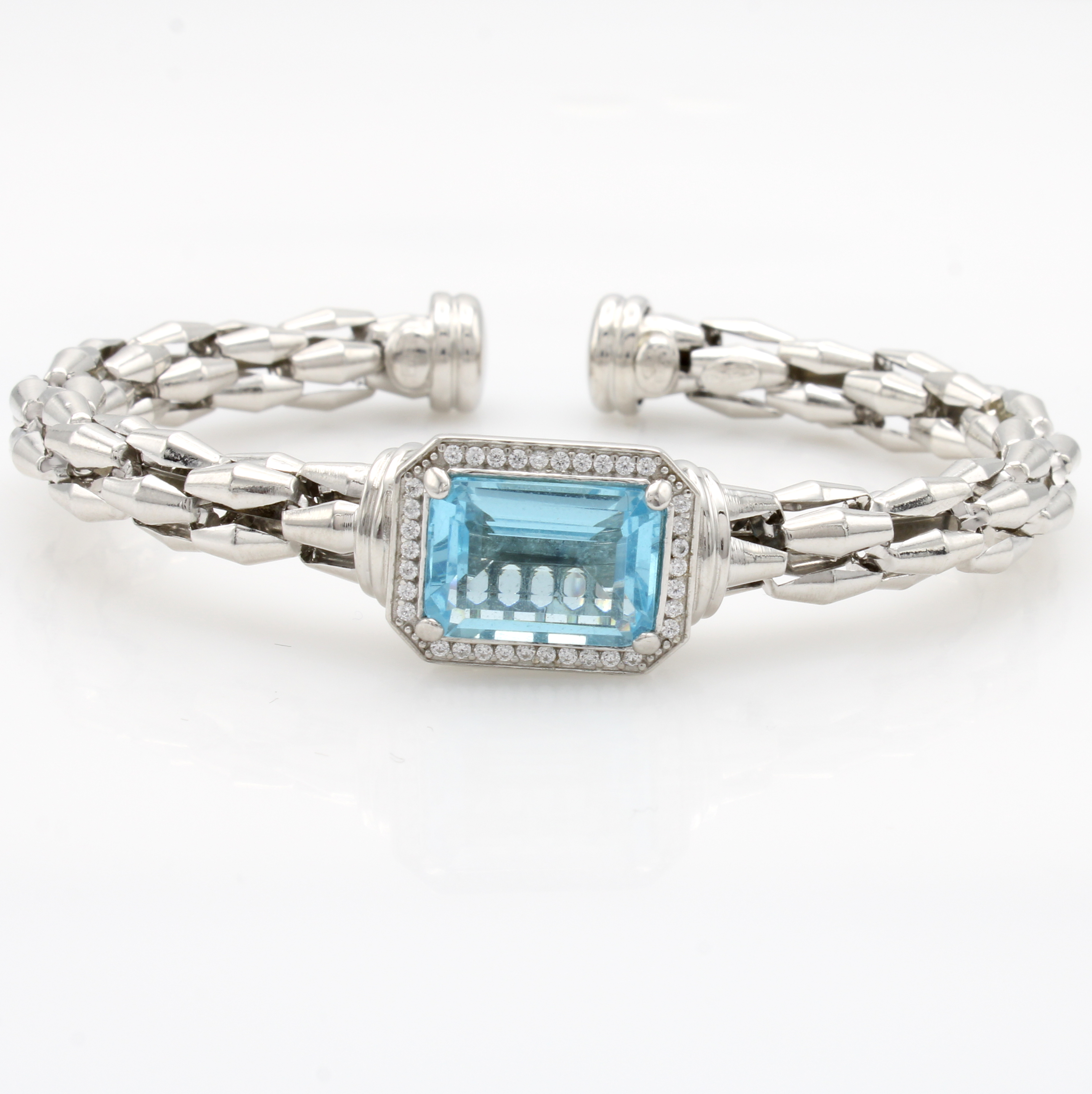 Armspange mit Zirkonias, 925er Silber, rechteckiger blauer und weiße Zirkonias, D. ca. 6 cm