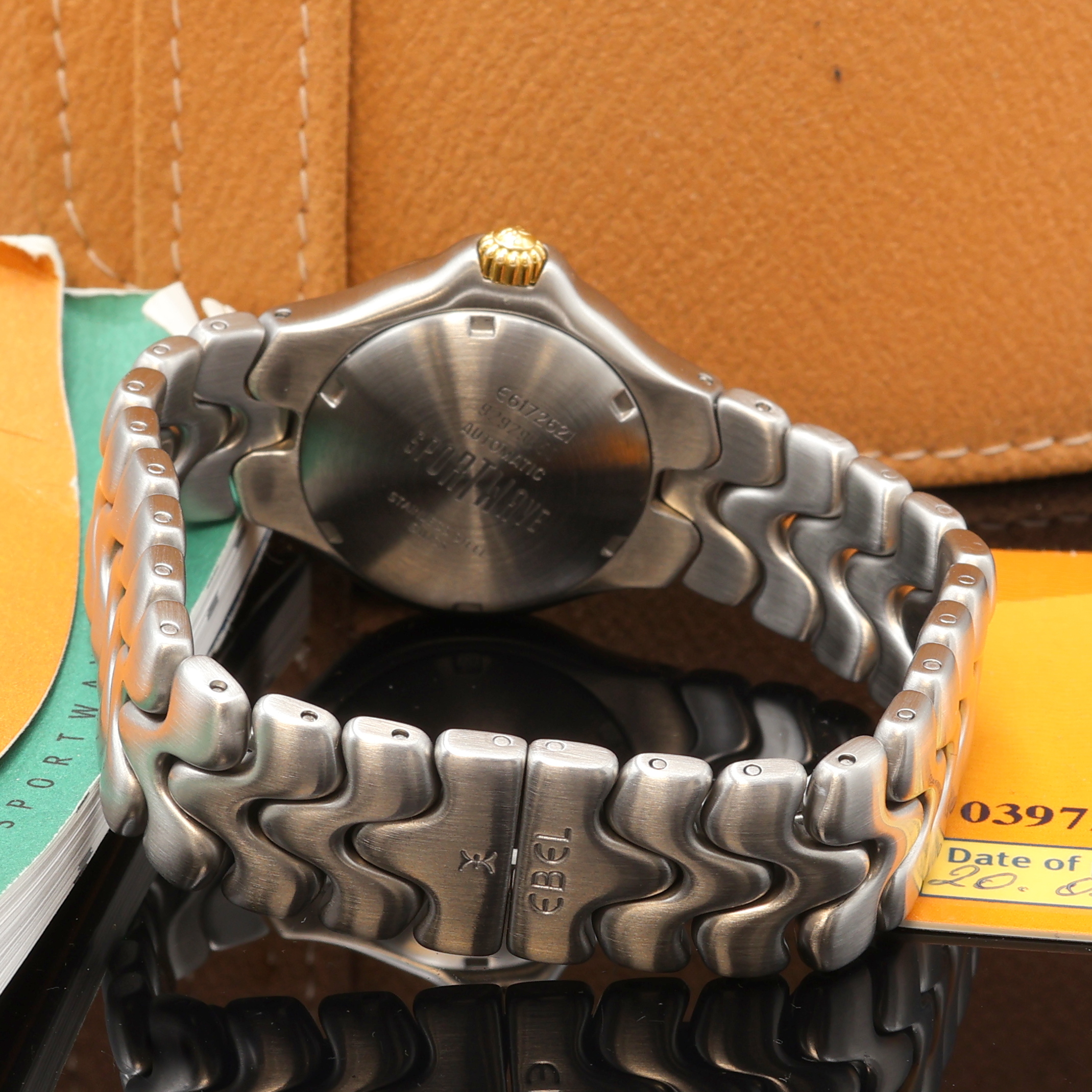 inkl. orig. Gliederband m. dopp. Faltschl., Boden verschr., schwarzes Zifferbl. m.