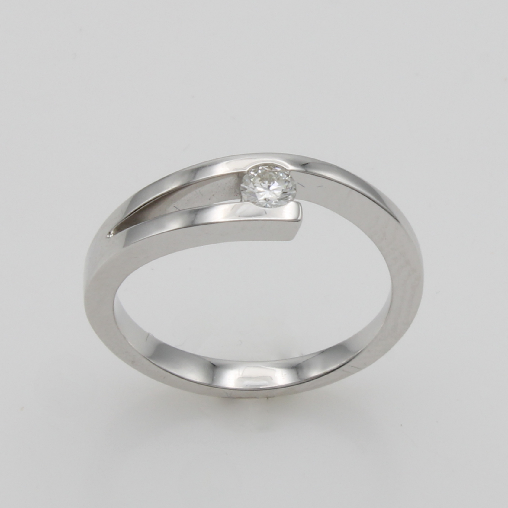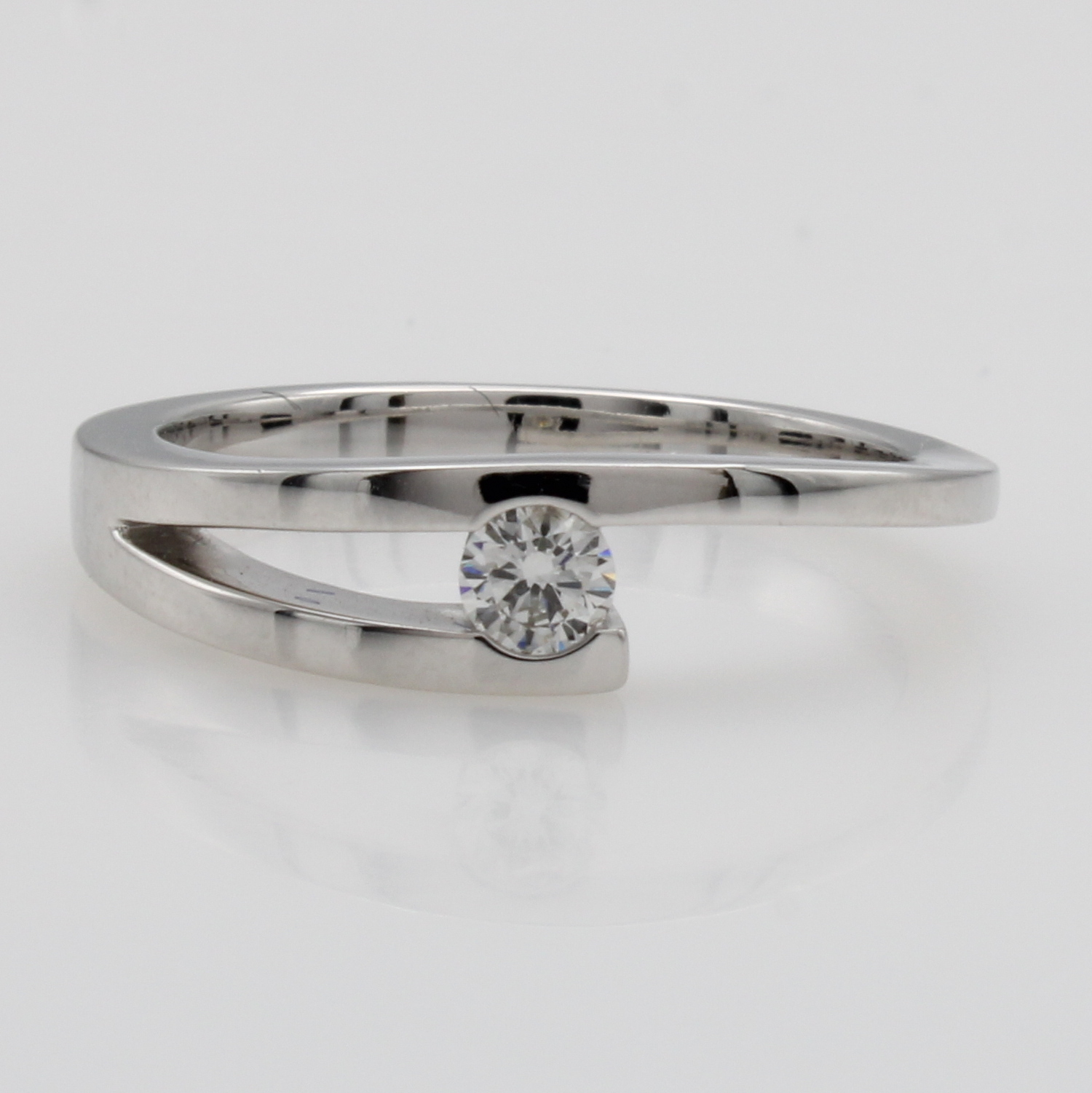 Ring mit Brillant, WG 585/000, Brill. in geteilter Ringschiene ca. 0.15 ct Weiß/p1, RW ca. 56 Schätzpreis: 2050, - EUR