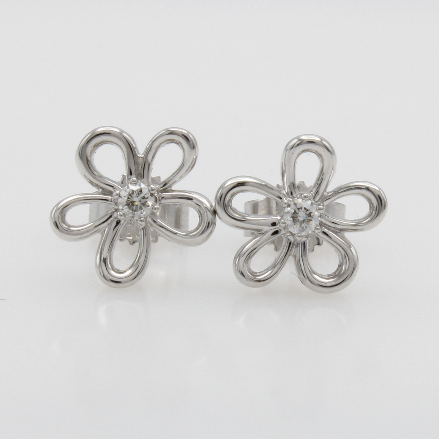 Paar Ohrstecker in Blütenform mit Brillanten, WG 585/000, 2 Brill. zus. ca. 0.10 ct Weiß/si Schätzpreis: 1200, - EUR