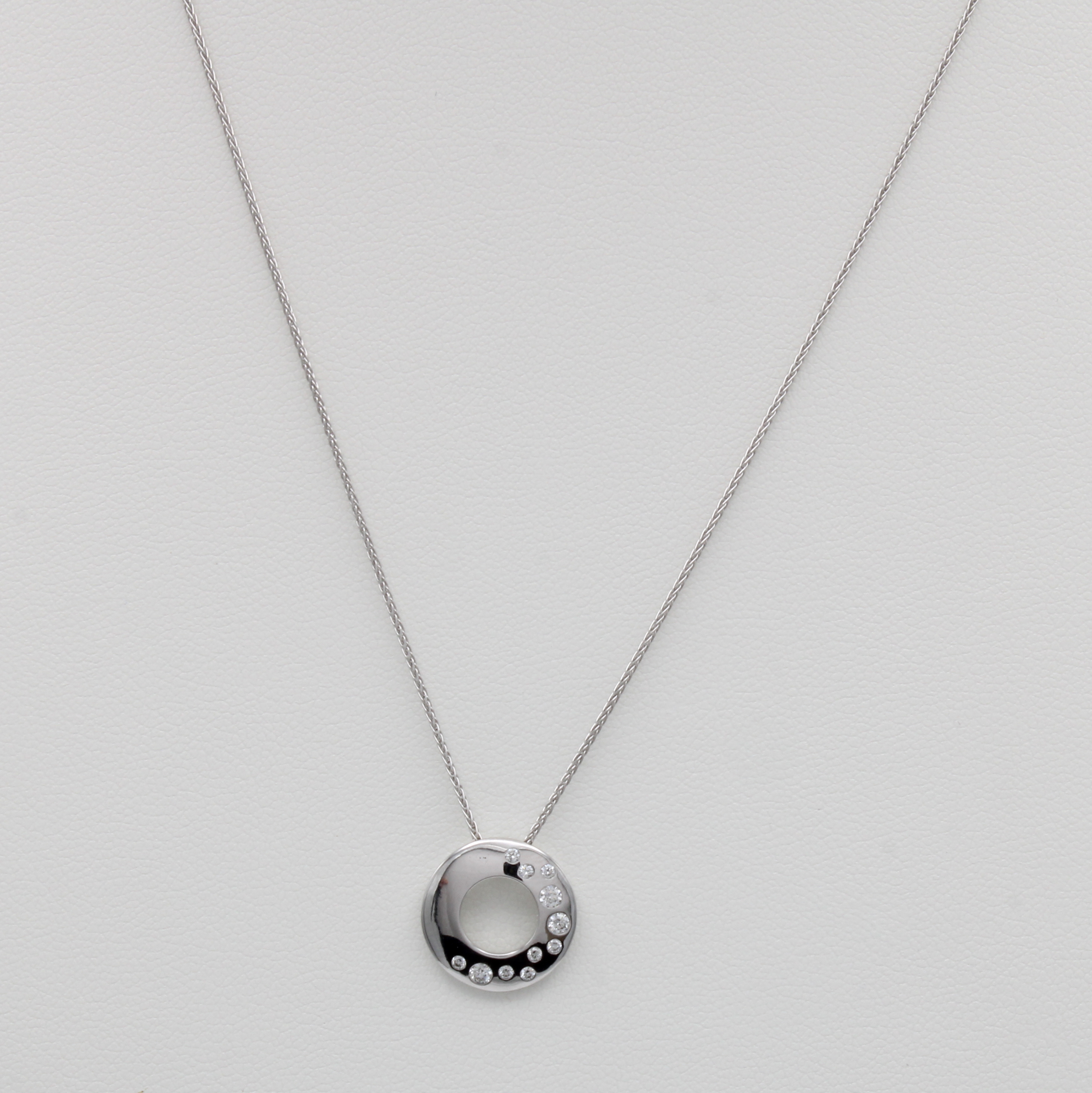 Runder Anhänger mit Brillanten an Kette, WG 585/000, Brill. verstreut gefaßt zus. ca. 0.15 ct Weiß/lupenrein, L. ca. 42 u. 44 cm Schätzpreis: 1550, - EUR