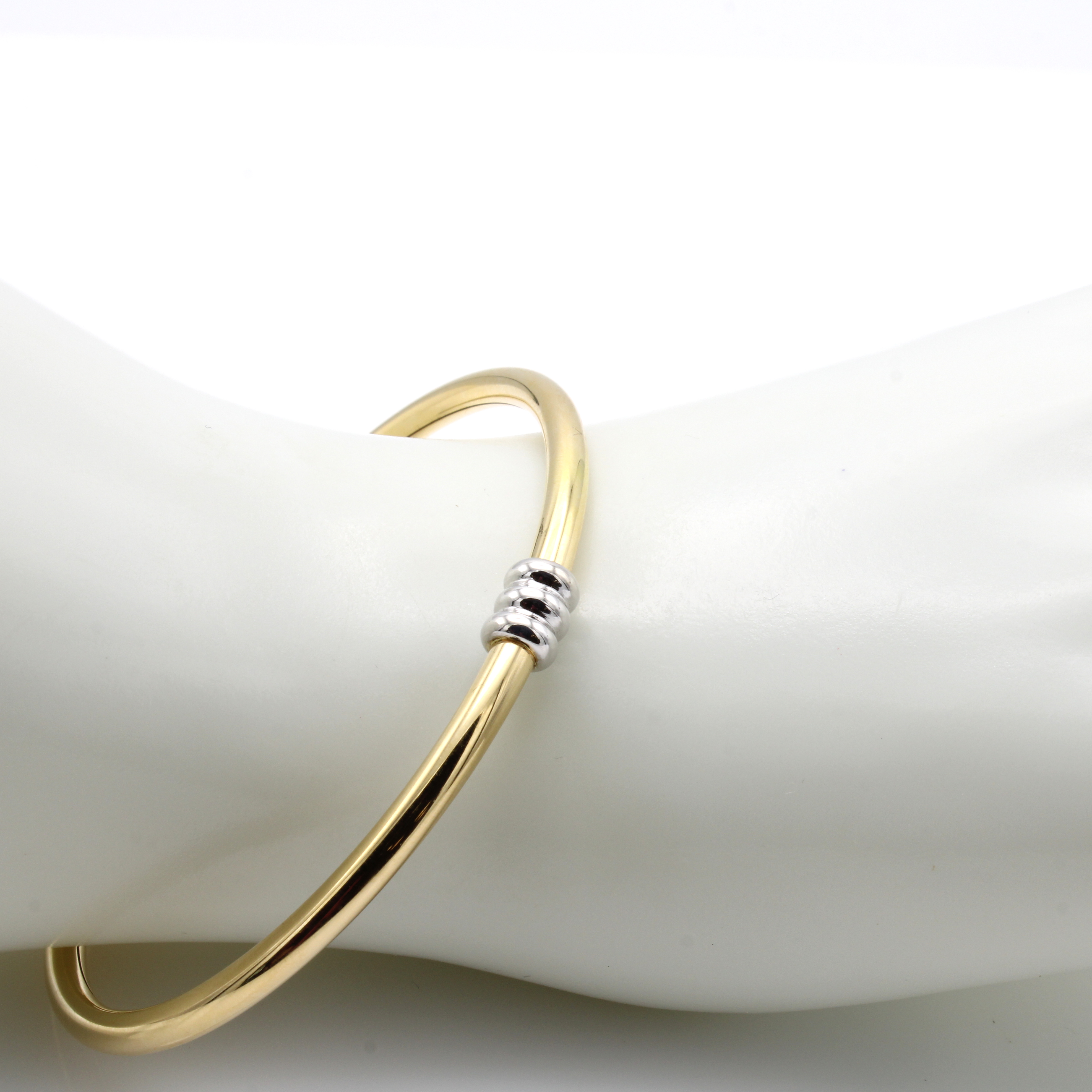 Armreif, GG/WG 750/000, 3 ovale WG Glieder Steckschließe, flexibel gearbeitet, hochwer- tige Pforzheimer Handarbeit